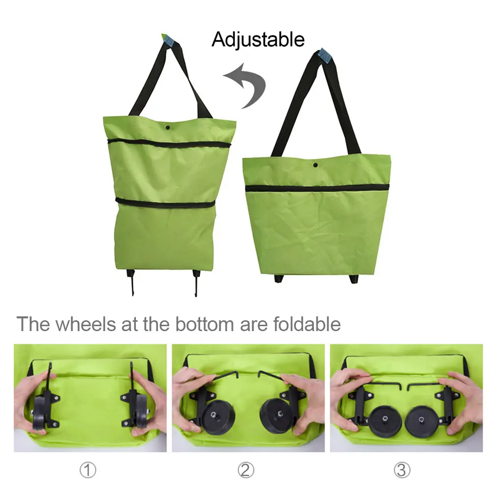 Detachable Tug Design: This trolley shopping bag has an invisible detachable tug design, which is very labor-saving and has a large capacity. It can hold a lot of vegetables and sundries. With a zipper, metal bracket, and bottom MDF, it is very convenient to use.