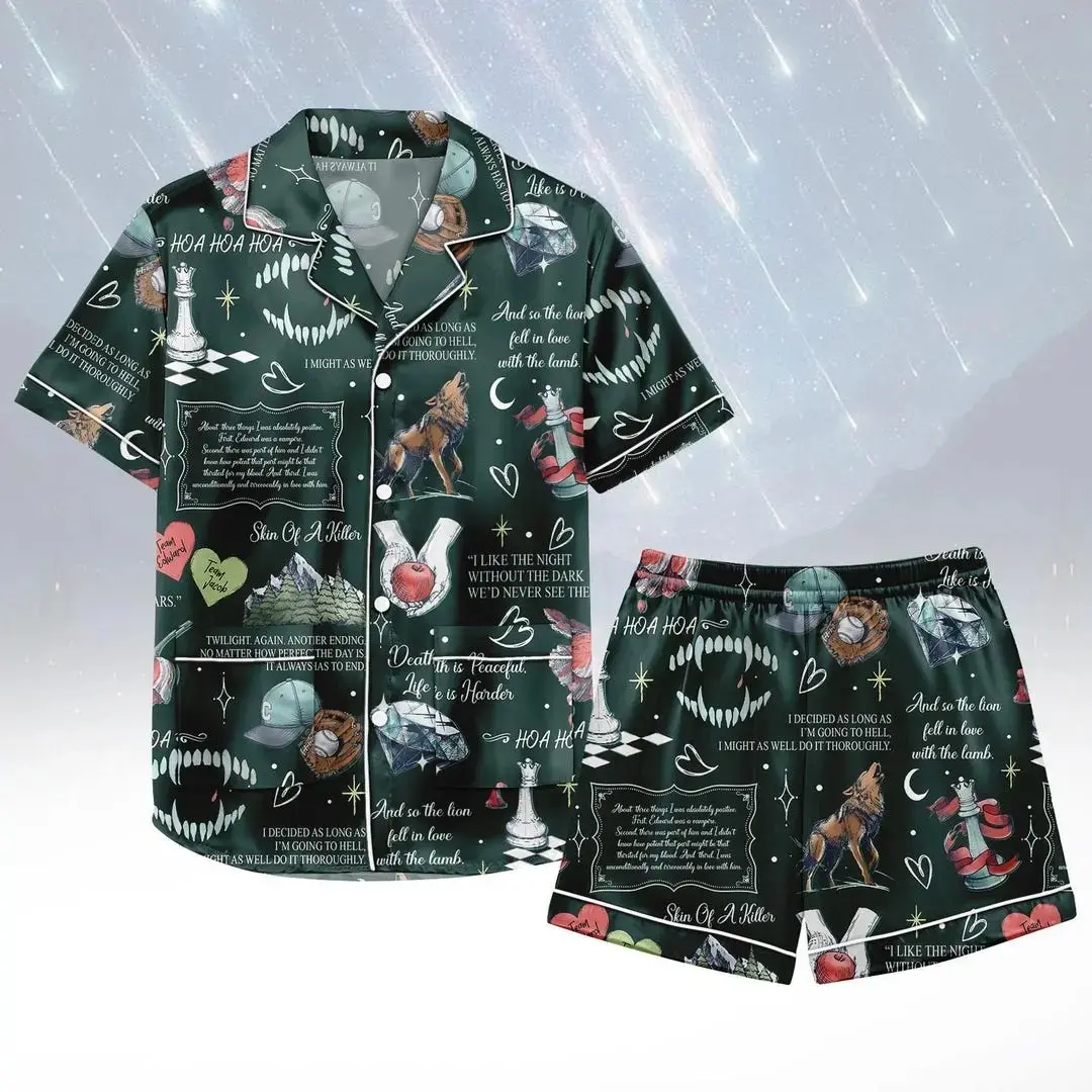 Vampire Short Satin PJs Set, Twilight Satin Pajamas, Dark Night Short Pajama Set, Women Pyjama, Gift for Her