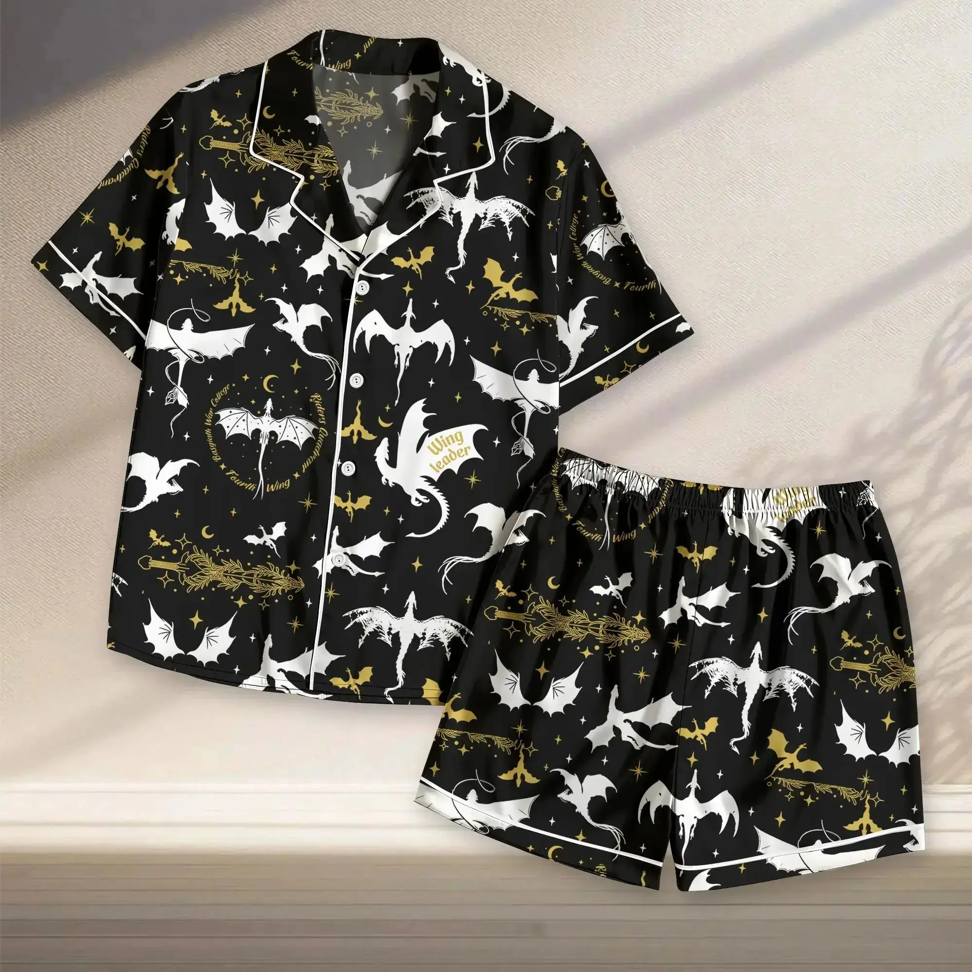 Fourth Wing Satin Pajamas Shorts, Basgiath War College Sleepwear, Dragon Book Pajamas, Violet Sorrengail Nightwear, Book lovers Pjs