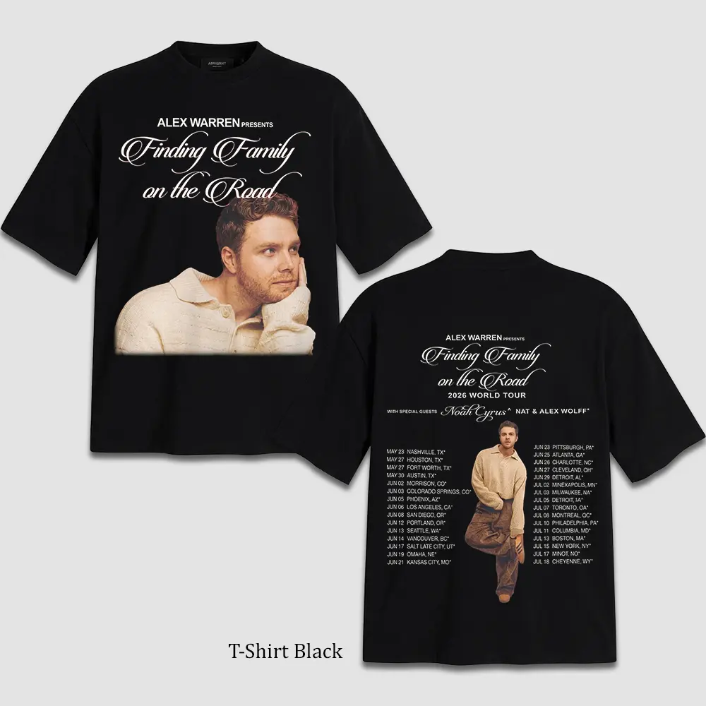 Retro 90s Finding Family Tour 2026 Alex Warren Two Sided T-Shirt, Vintage Soul Music Graphic, Oversized Heavyweight Tee for Men Women, Old School Hip Hop Apparel, Nostalgic Concert Fan Gift