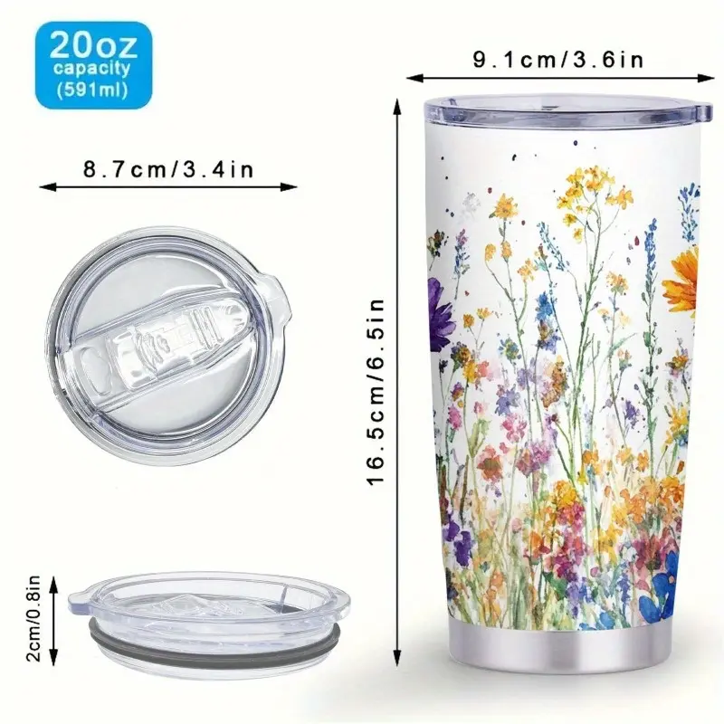 1pc, 20oz "Lively Meadow Blossoms" Theme Water Cup, Large Capacity Car Cup, Double-layered Insulated Water Cup, "Spring's Symphony" Theme Water Cup, Holiday Gift Water Cup, Birthday Gift, the Best Gift for Teachers, Friends, and Family.