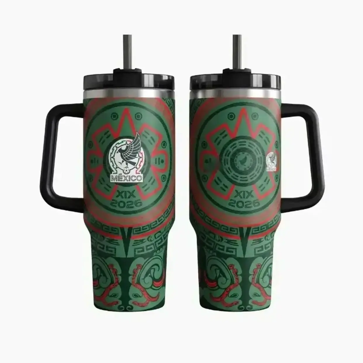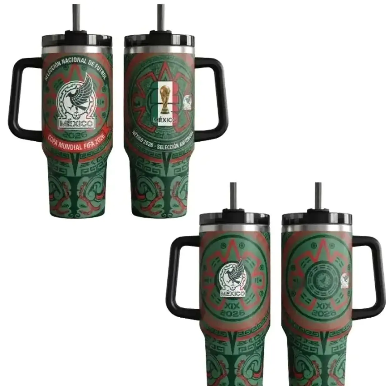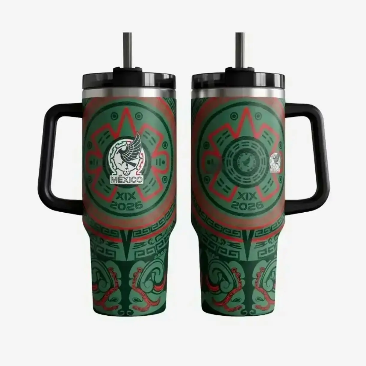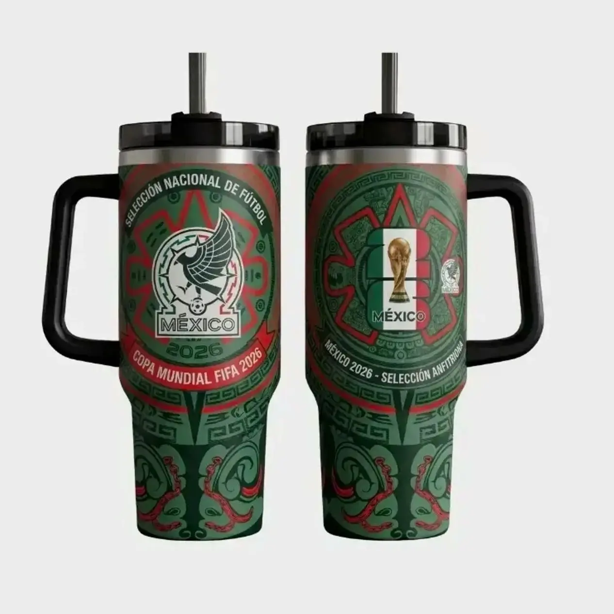 Mexico Soccer Inspired 40oz Tumbler, Football Fan Mug with Handle and Straw, Insulated Travel Cup Gift Idea