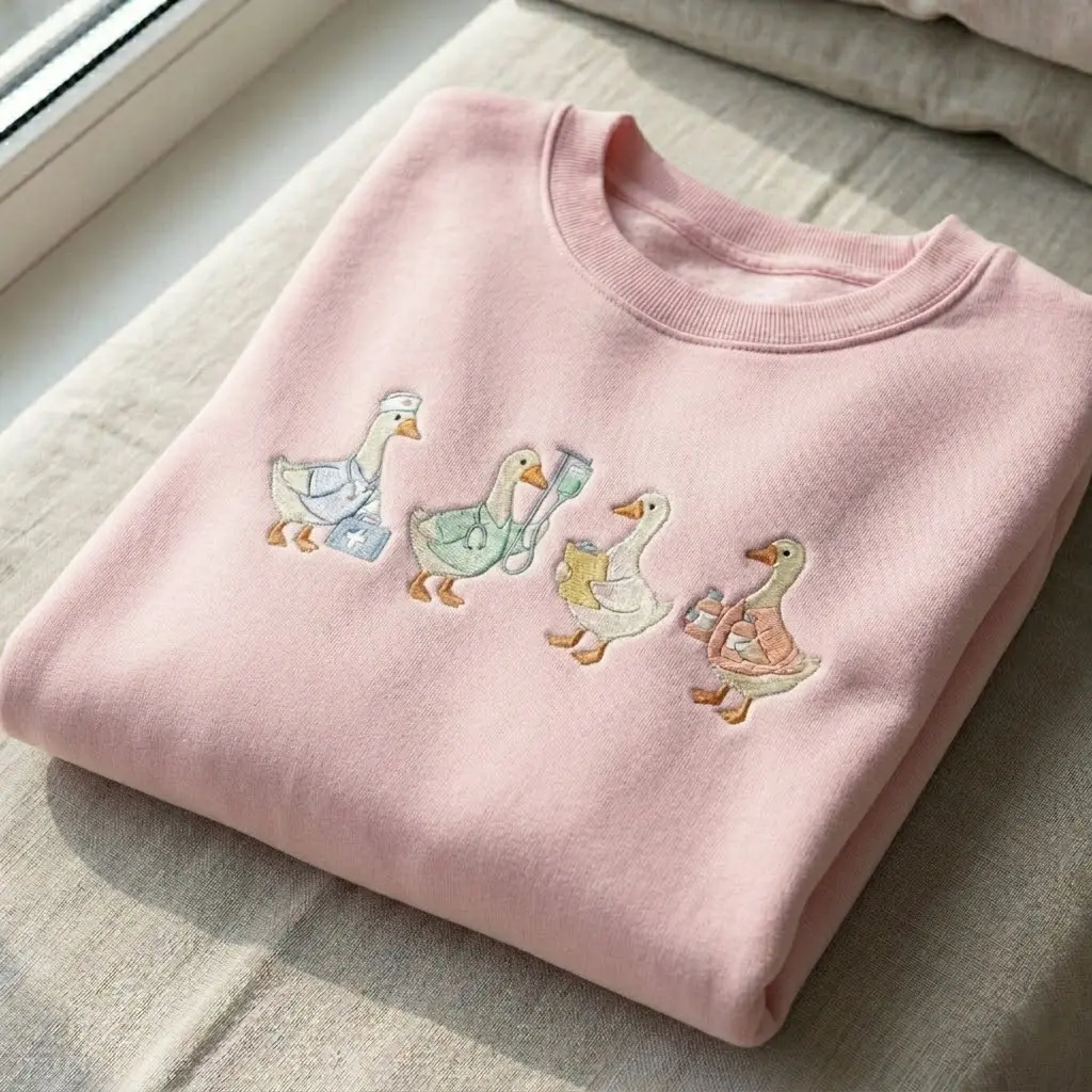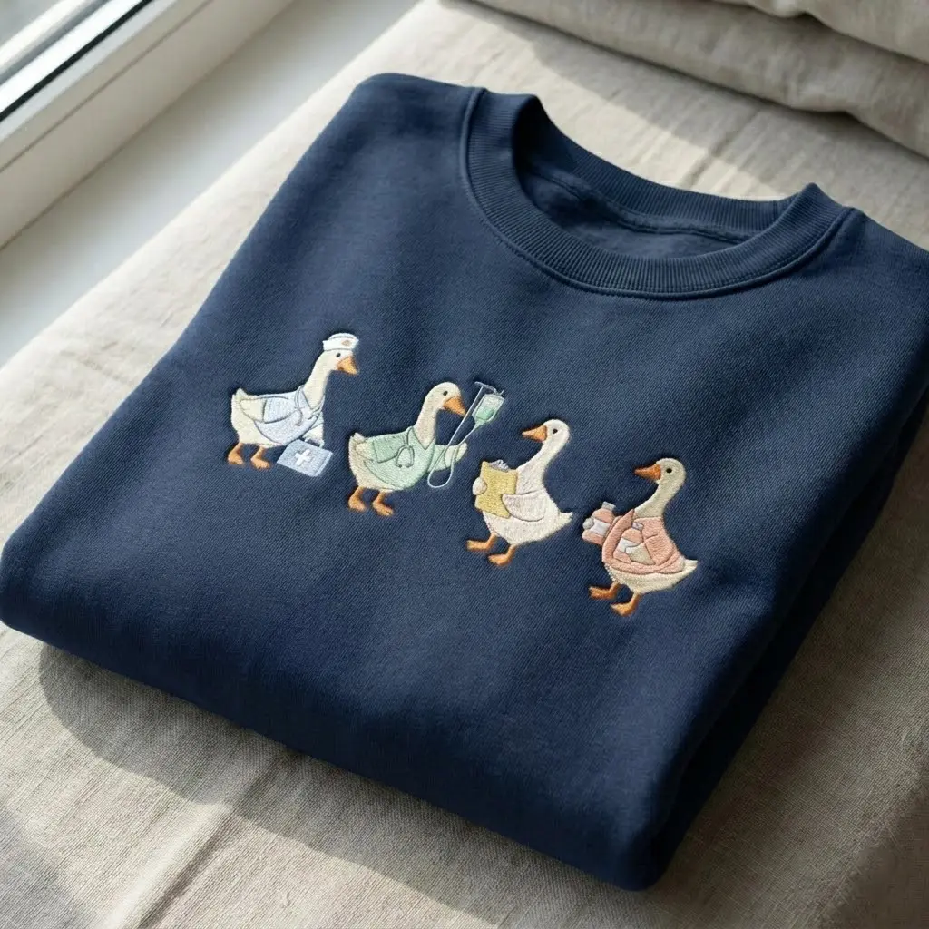 [MADE IN US] IV Nurse Duck Embroidered Sweatshirt, Infusion Therapy Ducks, Hospital Nurse Humor, Healthcare Crewneck