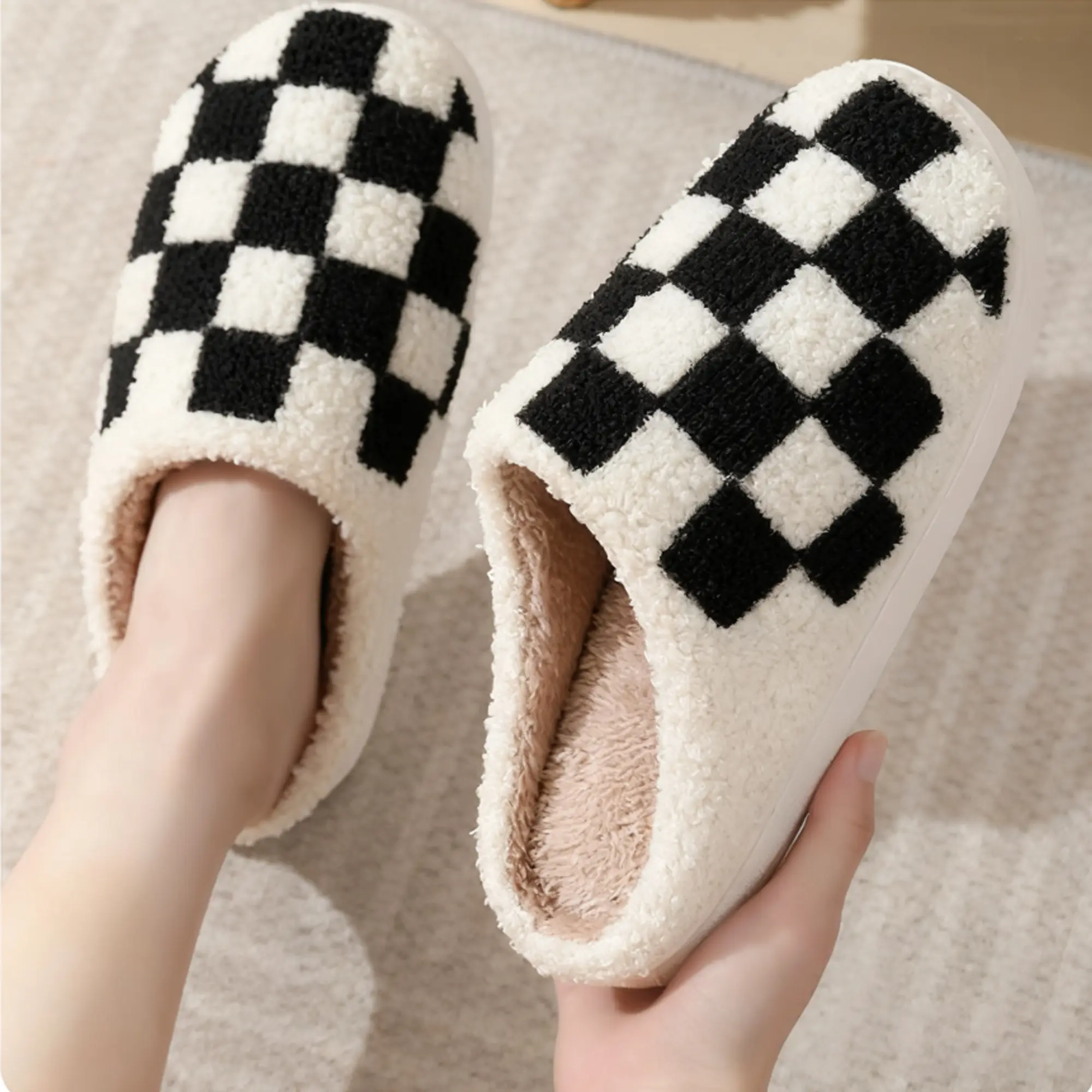 ·Comfort Meets Style: These checkered fuzzy slippers are perfect for indoor use. They offer a cozy, soft feel that keeps your feet warm. Ideal for couples, these slippers enhance your home's ambiance with their stylish design.