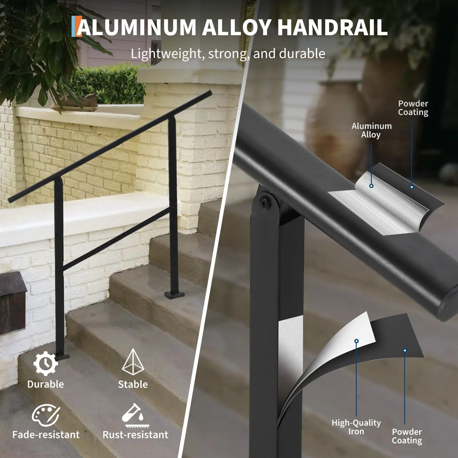 Flexible Multi-Scene Adaptation: Height-adjustable and customizable to shorten; 1ft distance between posts, 2-pack covers the full length of steps; suitable for indoor/outdoor porches, patios, garages, gardens, etc., compatible with concrete, brick, and wooden surfaces.