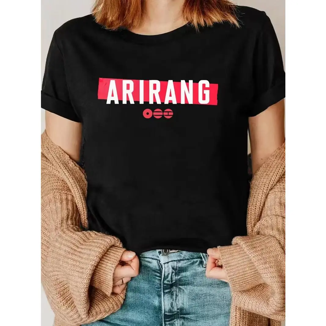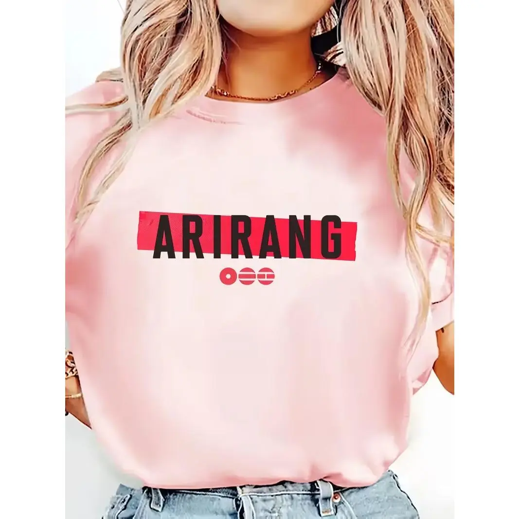 "Arirang" Box Logo T-Shirt – Red Bar K-Pop Graphic Tee | Korean Music Tour Shirt | White Modern Oversized Streetwear Top