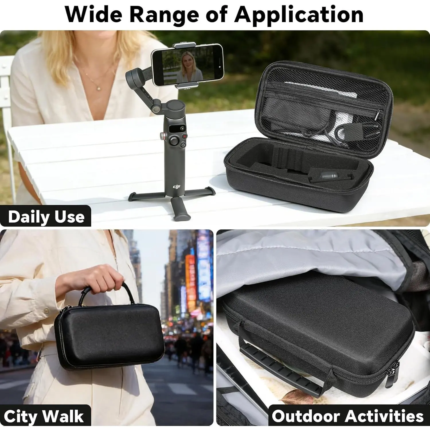 ·Lightweight and easy to carry, this case is ideal for vlogging, daily use or as a practical gift for Osmo Mobile users who want to keep their gimbal and accessories organized in one place.