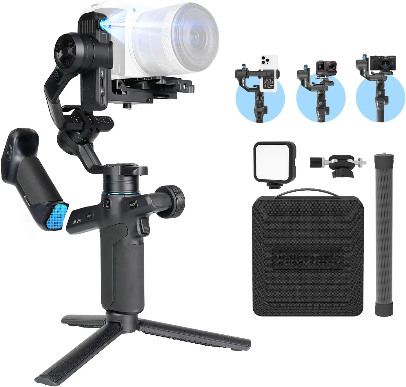 The FeiyuTech SCORP Mini 3 Pro Kit Gimbal is designed for mirrorless cameras, action, and smartphones. It features AI 4.0 tracking for smooth video capture. The gimbal includes a detachable remote handle for added convenience. Perfect for enthusiasts and professionals alike, this kit offers versatile functionality.