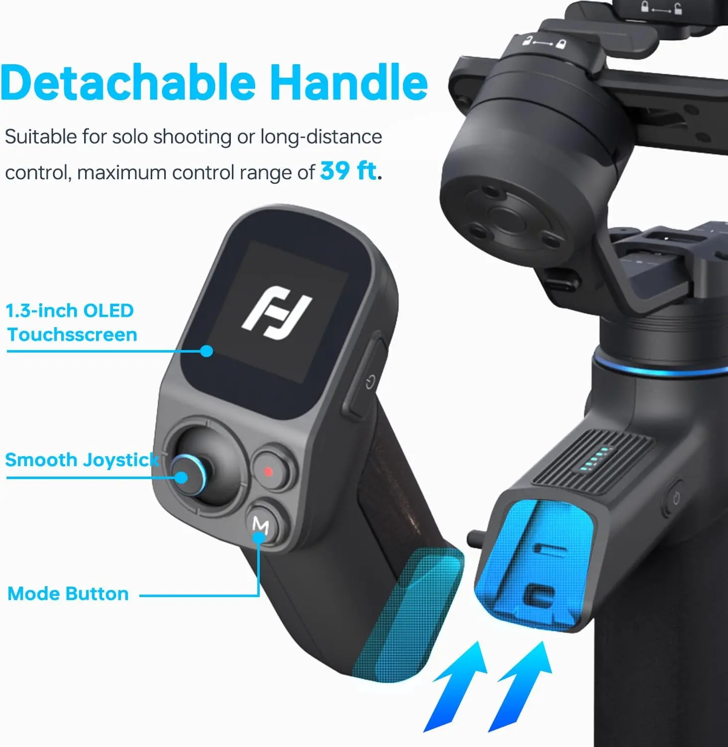 ·Detachable Remote Handle: Provides flexibility in handling the gimbal.