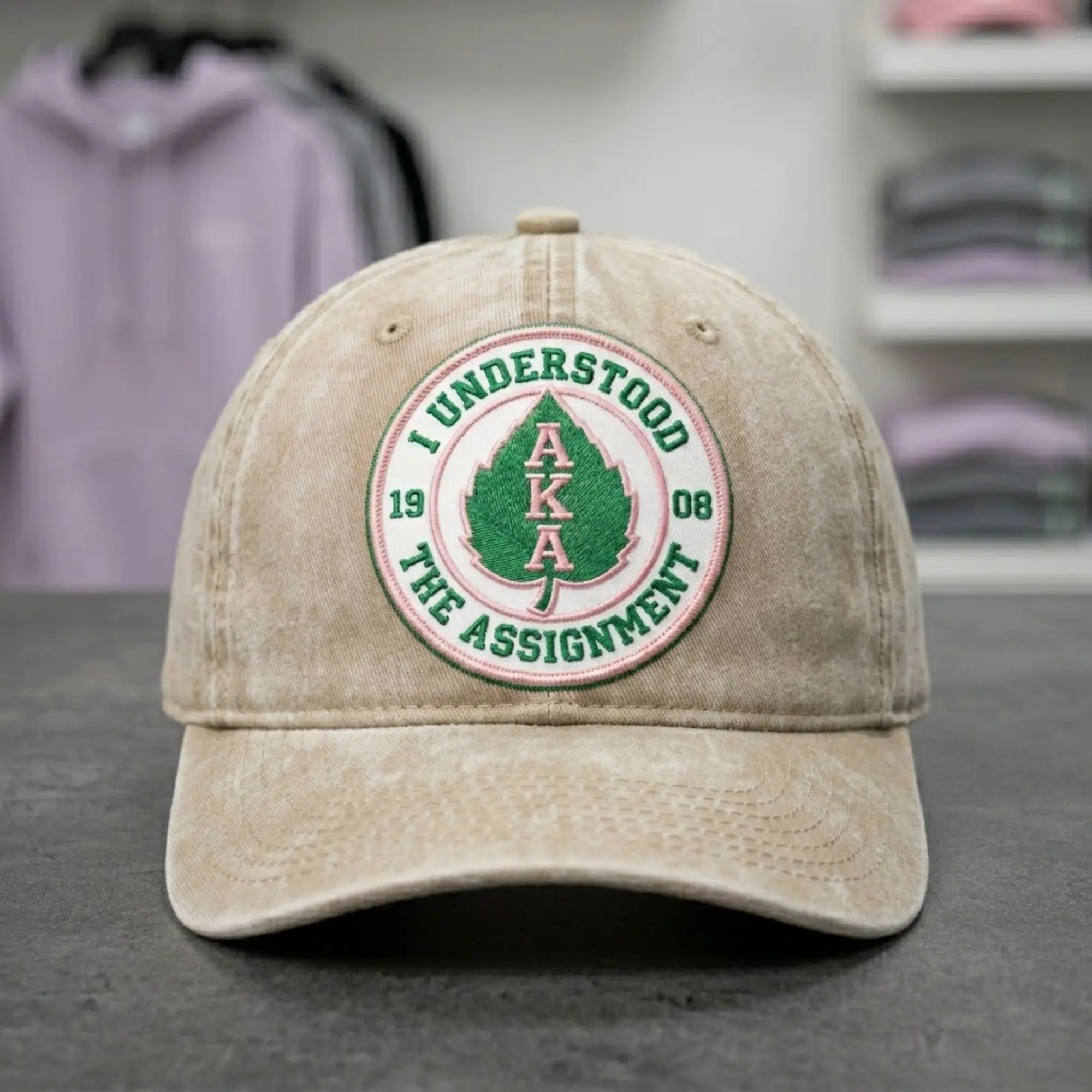 Alpha Kappa Alpha Embroidered Washed Out Hat, Vintage AKA 1908 Baseball Cap, Pink and Green Sorority Ivy Leaf Classic Hat, Gift For Mother's Day