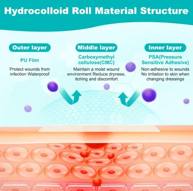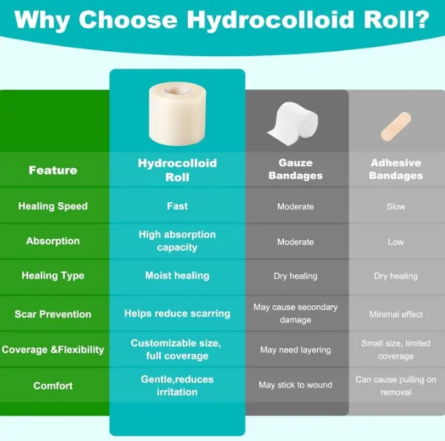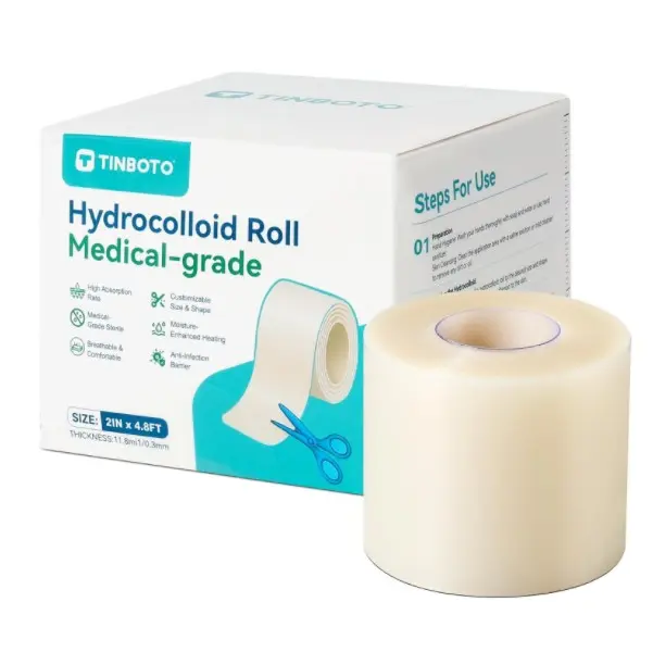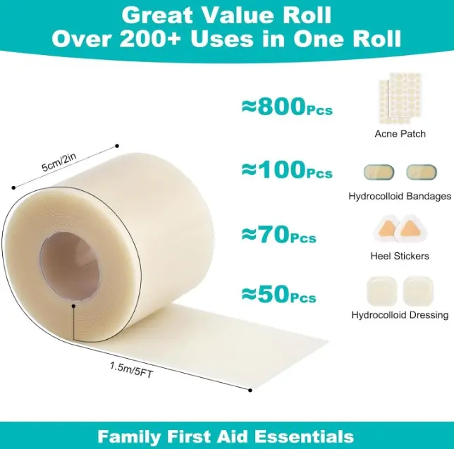 Hydrocolloid Roll for Wound Care, Hydrocolloid Bandages with Self-Adhesive, Cut-to-Size Patch Bandages, Ultra Absorbent, Waterproof, First Aid Kit Essential (2IN*4.8FT)
