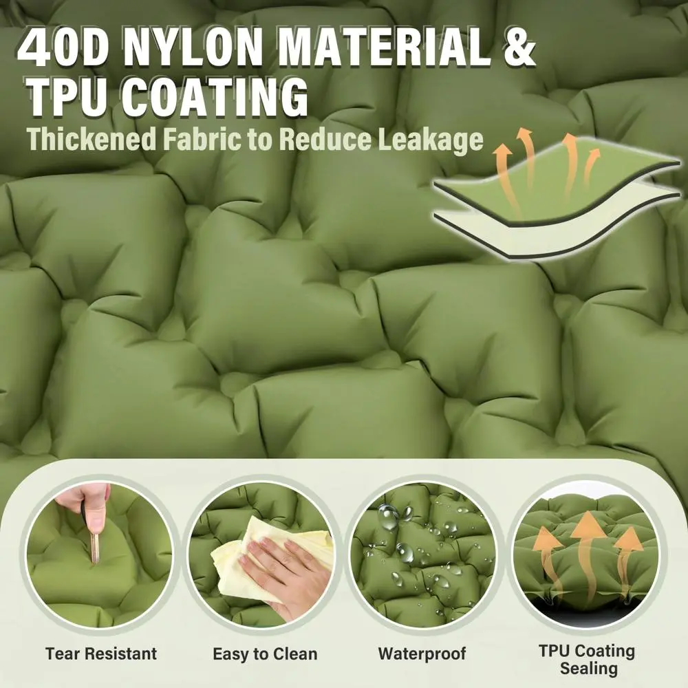 [40D Durable Nylon]Made of lasting Waterproof 40D nylon and TPU coating.The camping mattress is waterproof, wear-resistant, and more durable and is good for every weather, condition, and terrain.It’s the best friend for camping, travel, hiking, fishing, climbing, etc.Weight Capacity is powerful enough to support, and just enjoy the sleeping pad while using it.