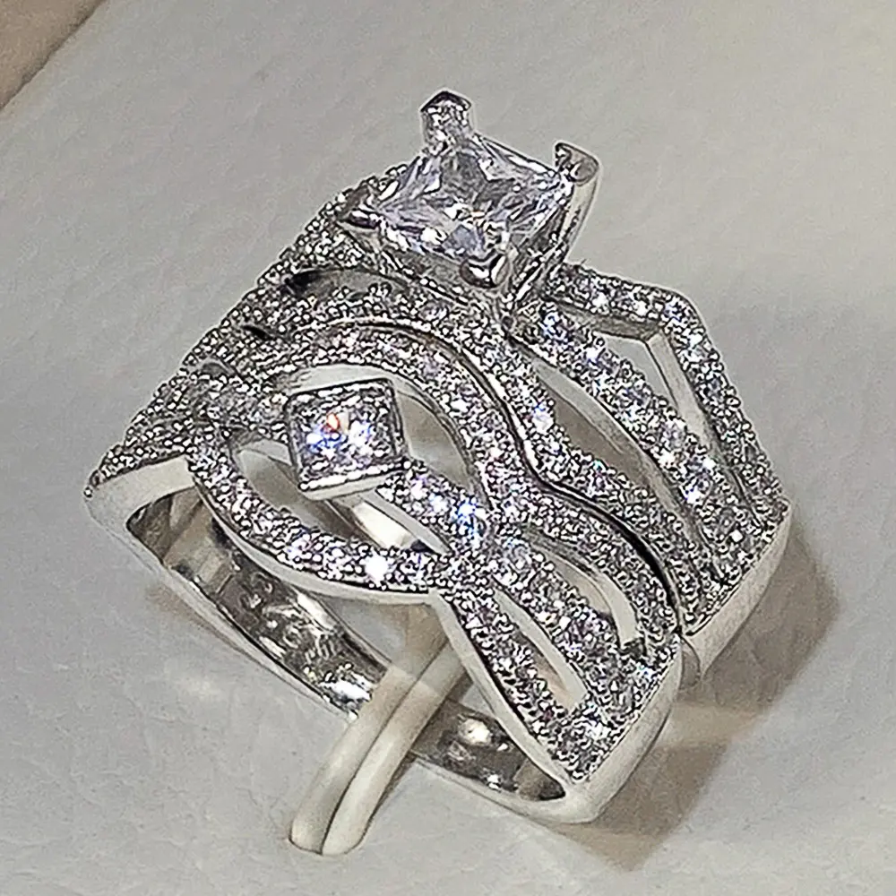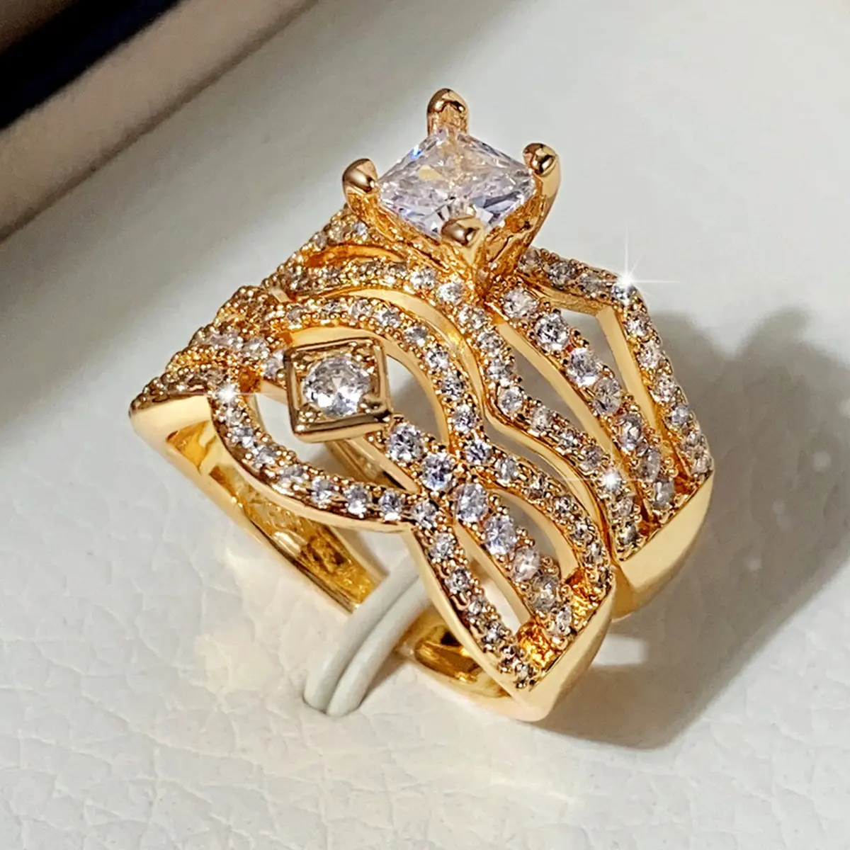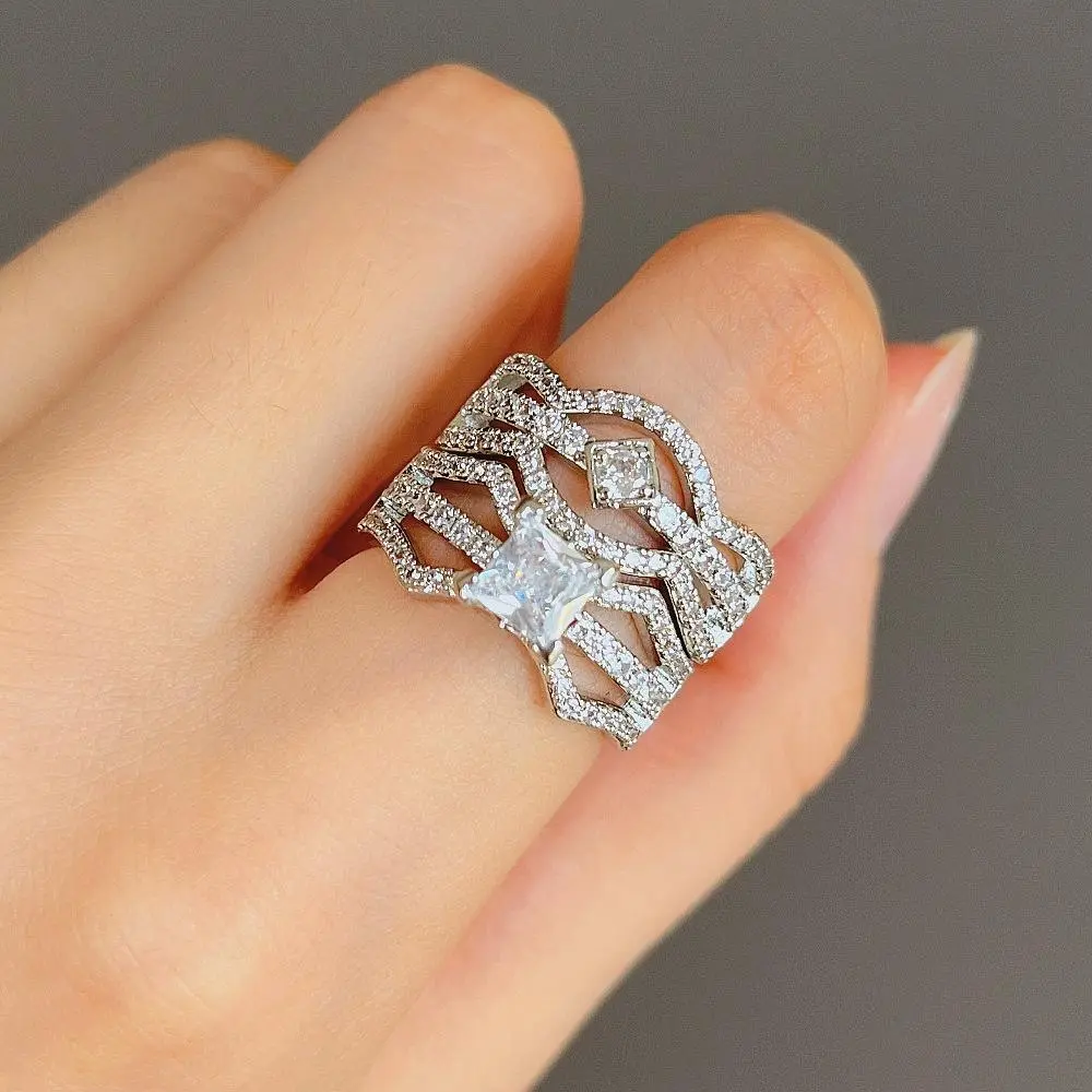 ·👑 3-Piece Stackable Set: Interlocking design allows wear as a single statement ring or stacked for a bold, glamorous effect, ideal for engagement, weddings, and parties.