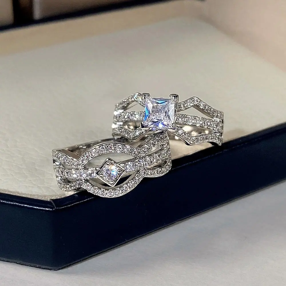 New Arrival Full Pave 8 Hearts 8 Arrows CZ Bridal Ring Set | European & American Party Engagement Wedding Band
