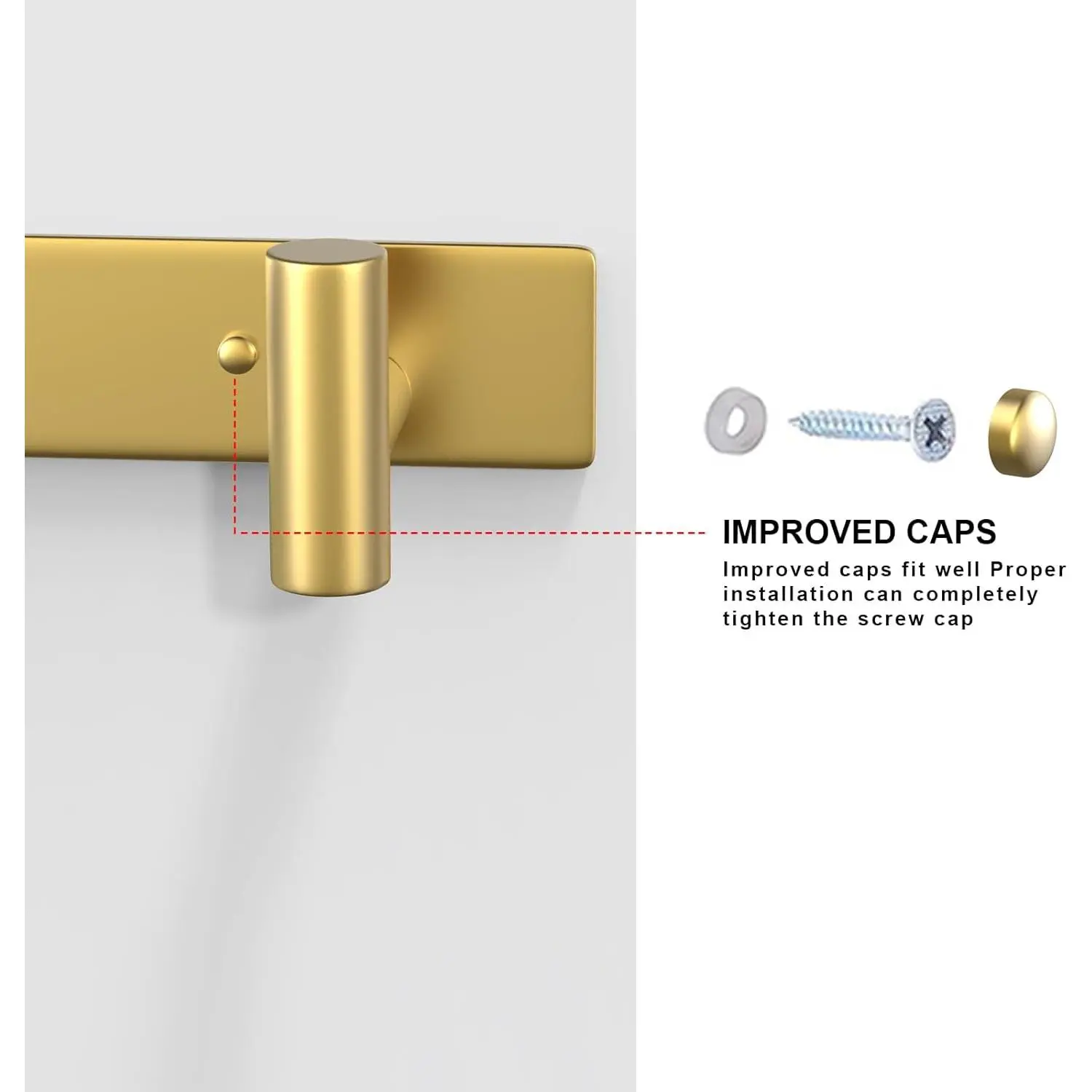 Hat and Coat Wall Mount Rack - Hooks for Robes, Bags, Keys, and Towels - Bathroom Towel Hanger Organizer (Gold, Shape 5 Hooks 1 Pack)