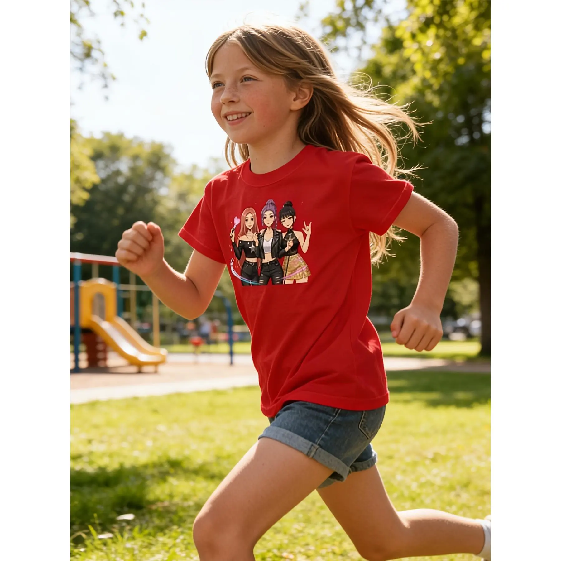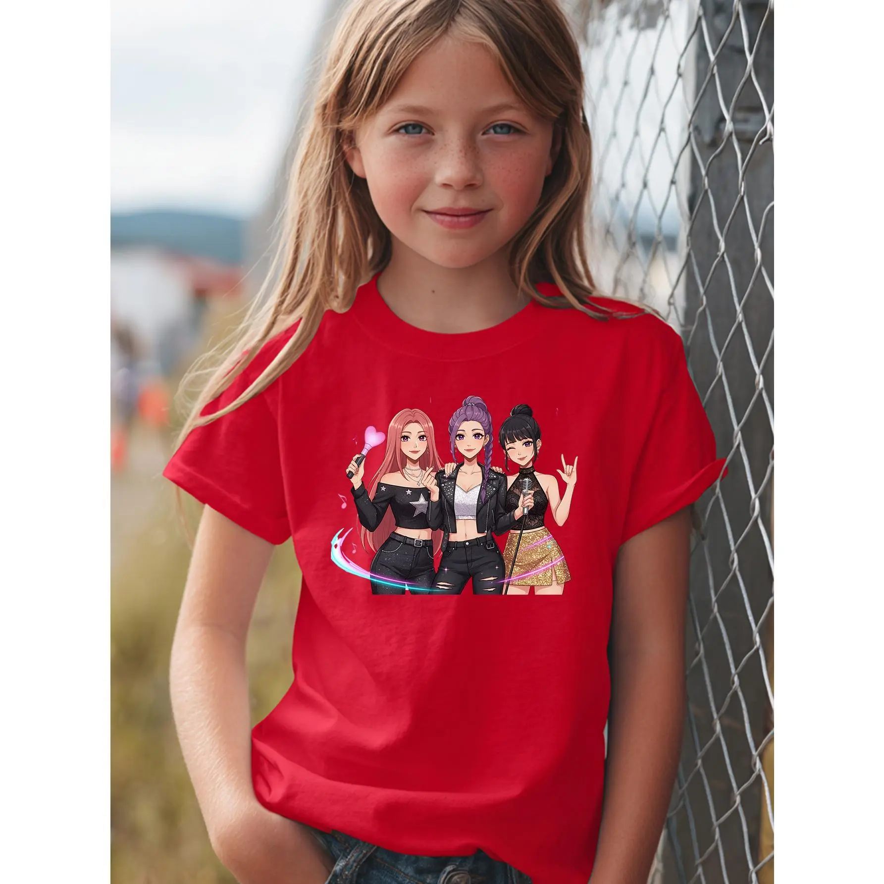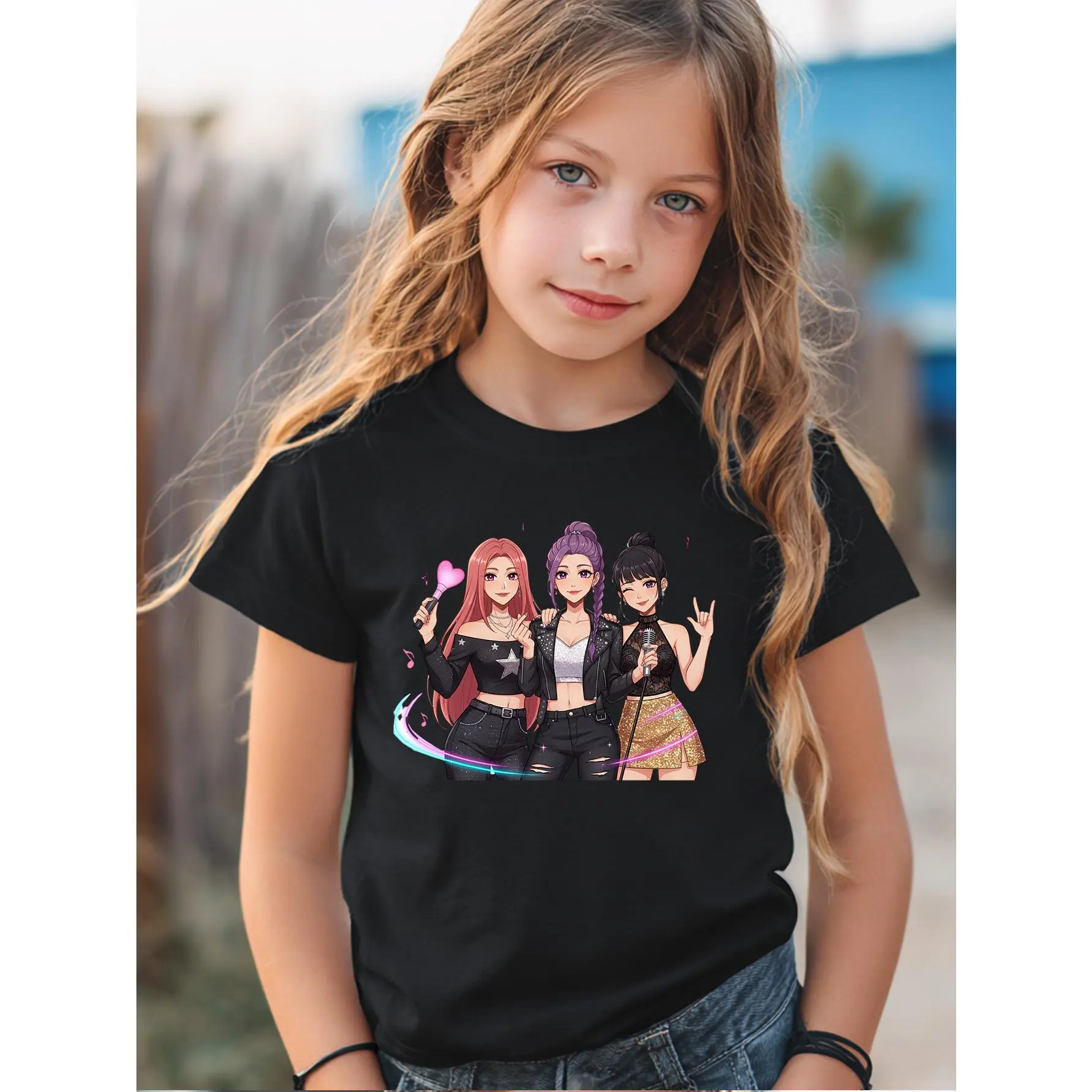 1K-POP Cartoon Girl Group Print, Skin-friendly, Breathable, Trendy and Eye-catching Short-sleeved Top, Perfect for Girls' Idol-chasing and Party Outfits, a Must-have for Black Friday, Valentine's Day, and Other Holidays, Full of Trendy Vibes and Super