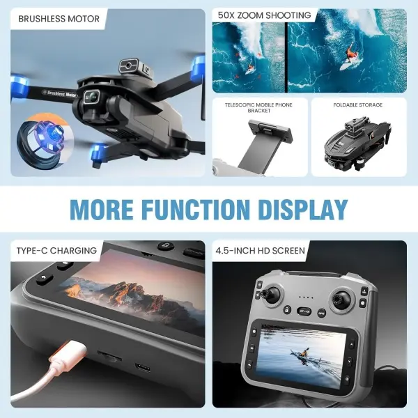 • 【4.5" inch screen, No Phone Needed】 Cyaxzolp V168MAX drone can be used without connecting a phone. Make your flight simpler and easier. easy to shoot and easy to control for novices.