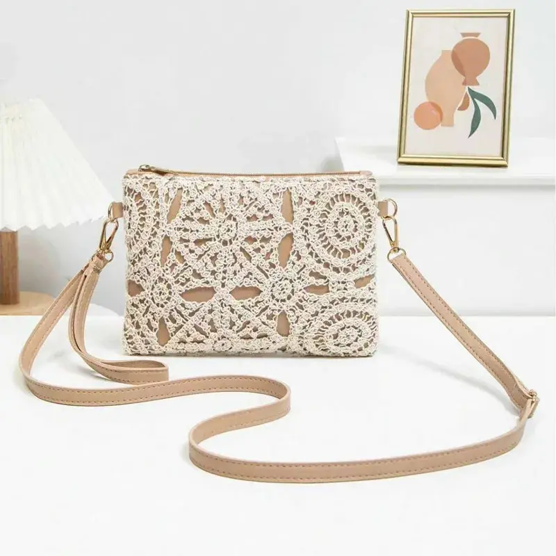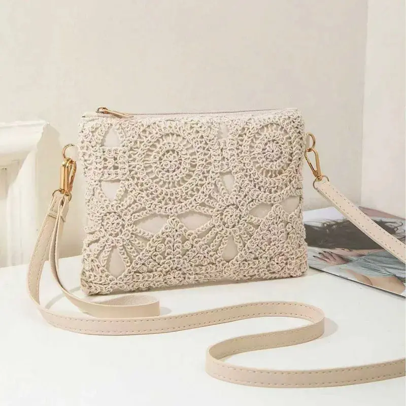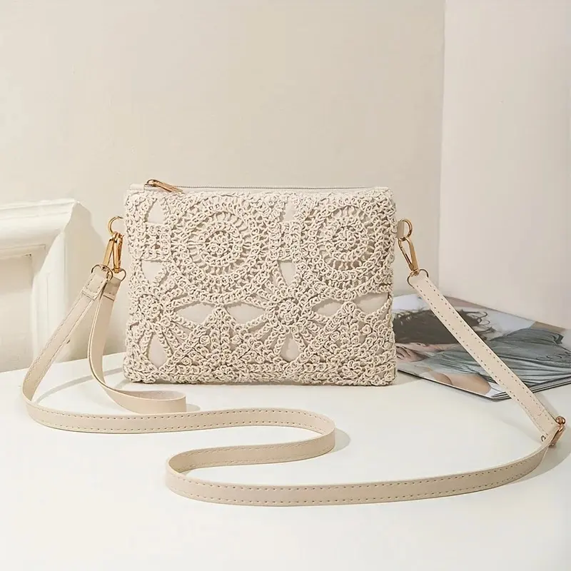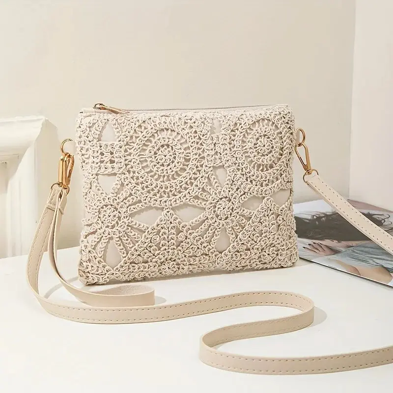 Mini Hollow Weaving Bag with Wrist Strap and Coin Wallet, Teen Crossbody Bag, Multi-Functional Small Unique Square Shoulder Bag