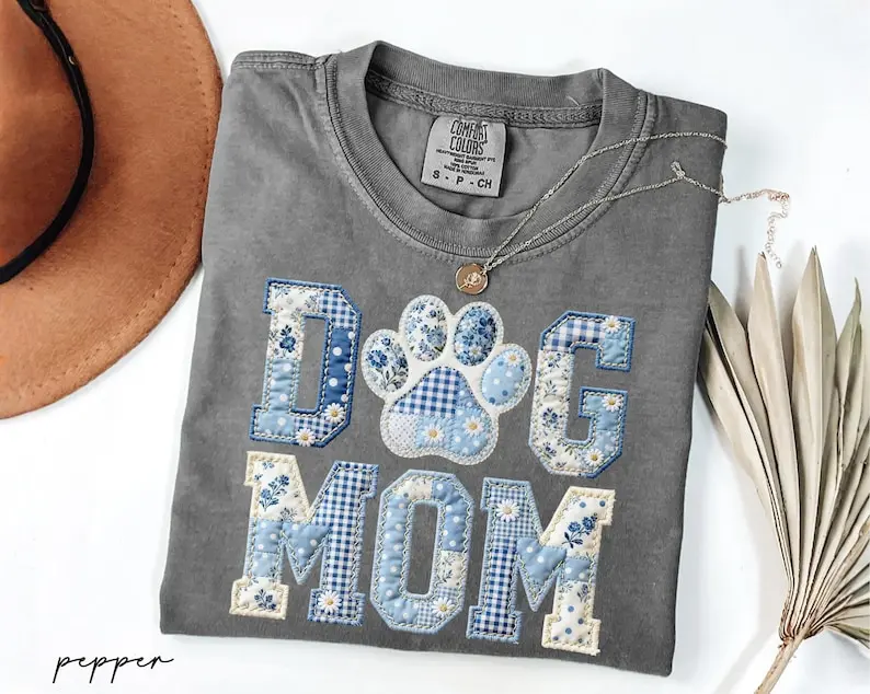 5. Comfort Colors Dog Mom Shirt, Floral Faux Patchwork Dog Mama Tee, Dog Lover Gift, Toile Fur Mama Shirt, Mother's Day Gift, Pet Owner Gifts