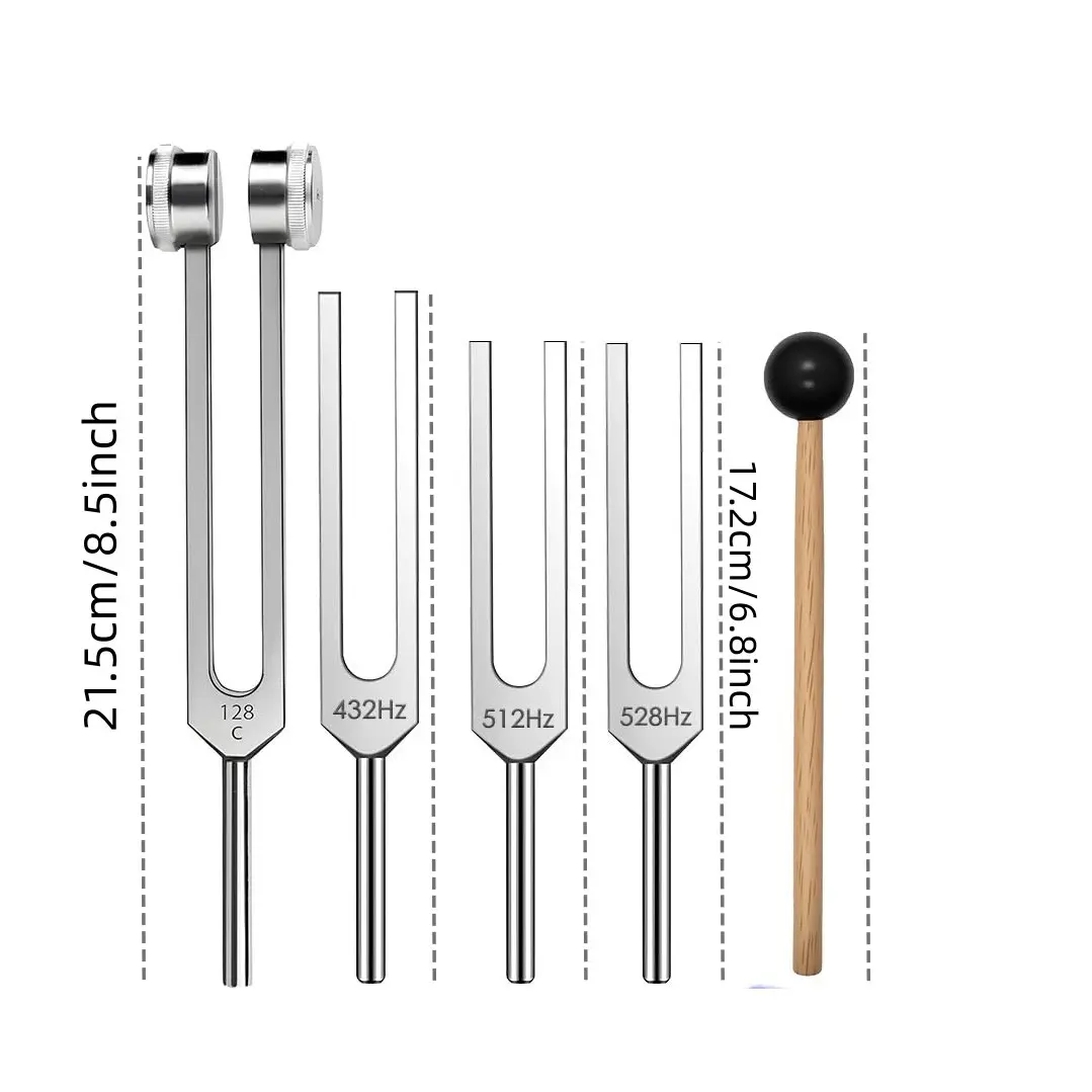 Tuning Fork Set – 128hz 432hz 512hz 528hz, Weighted and Unweighted Frequency Tools, Yoga, Meditation, Chakra, Gift Idea