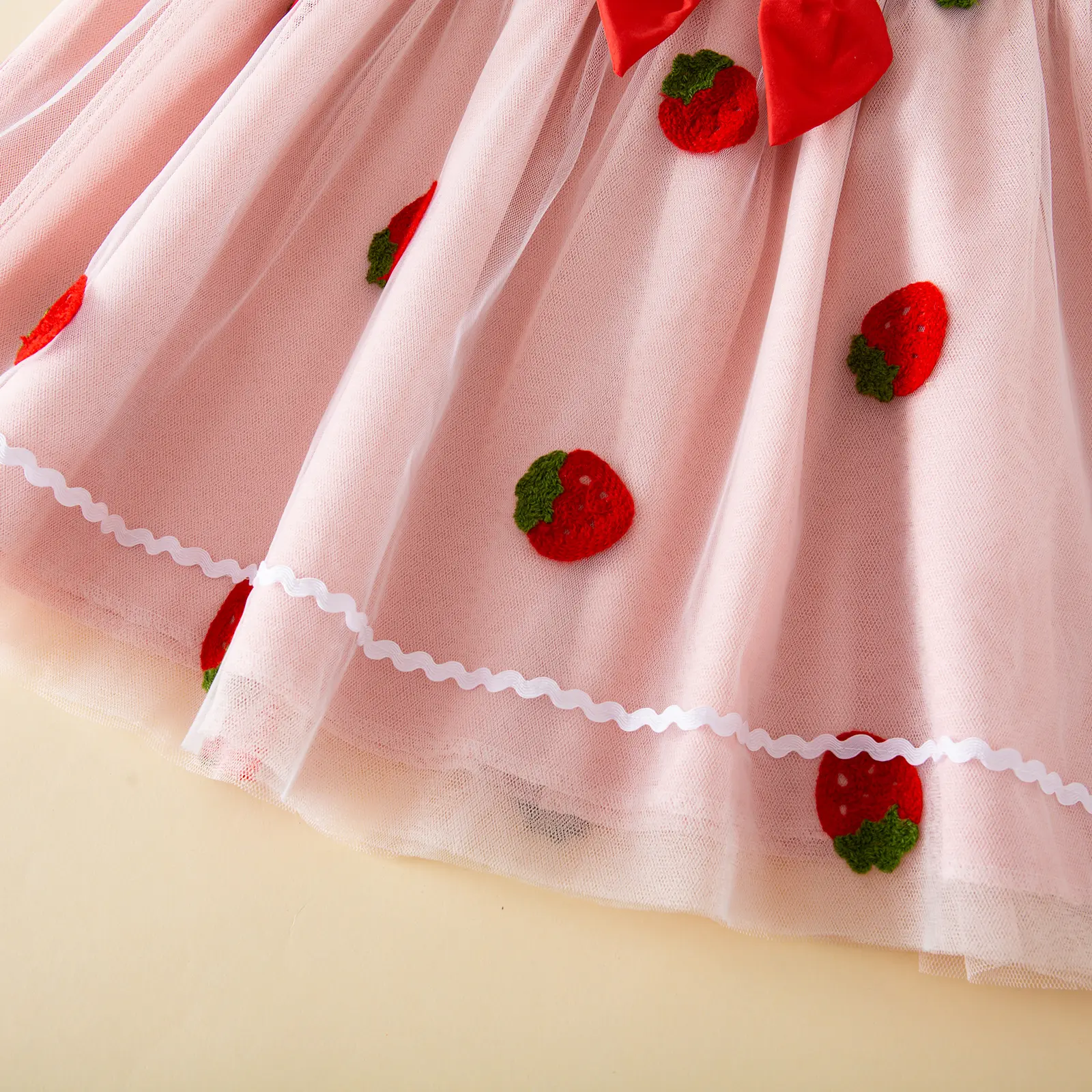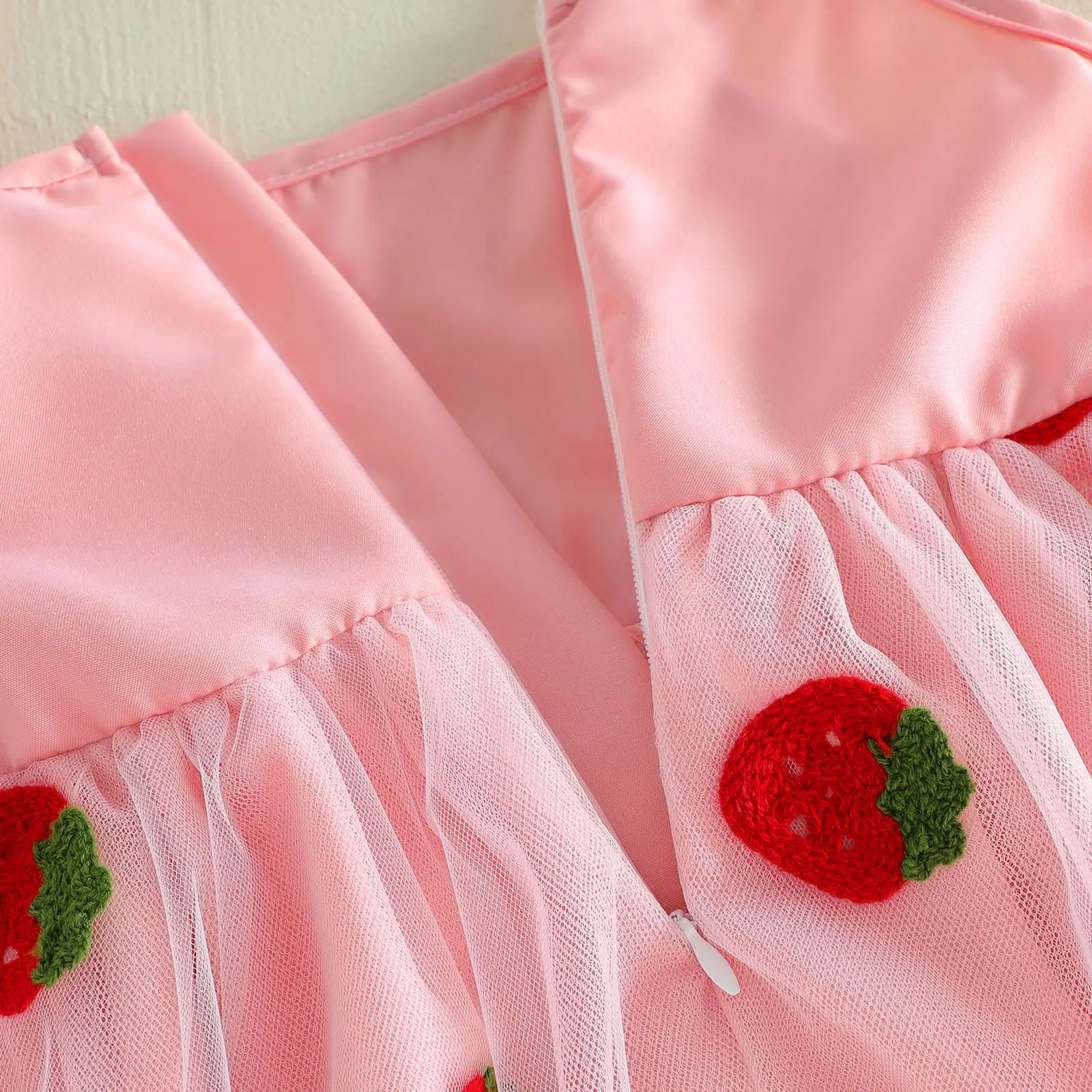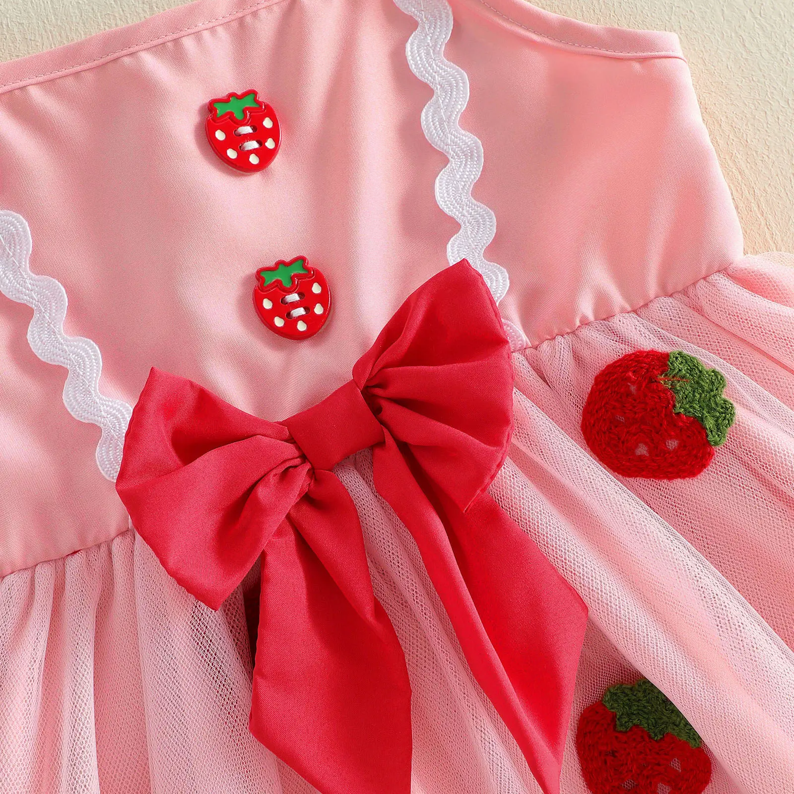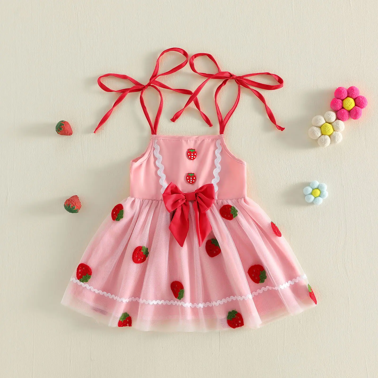 Toddler Girl Summer Sleeveless Dress Tie-Up Shoulder Strap Strawberry Tulle A Line Dress