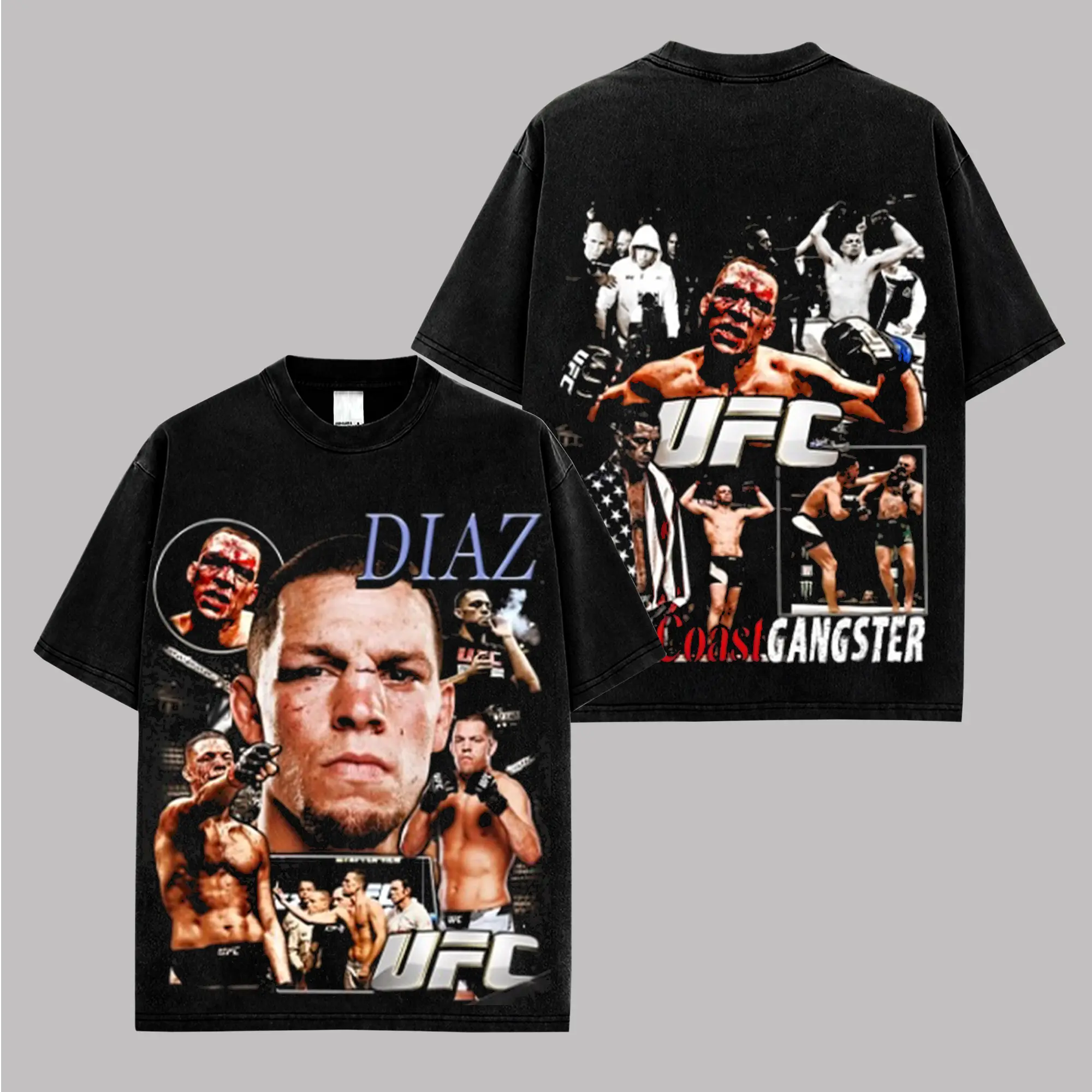 'West Coast Gangster' Nate Diaz UFC Graphic Premium Washed Cotton T-Shirt For Fight Fan, Stockton Legend Fan Shirt, Nathan Donald Diaz Merch, Nate Diaz Inspired Fight Tee Gift