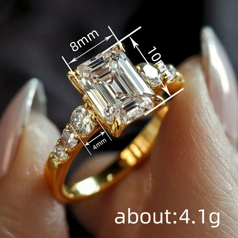 Classic Emerald-Cut 4-Prong Solitaire Ring for Women | TEMU Spring New Arrival Wedding Engagement Jewelry