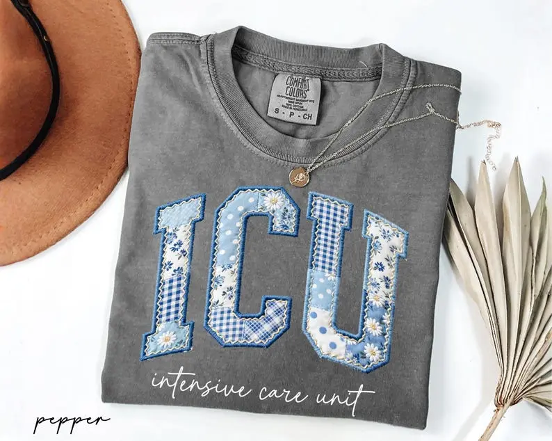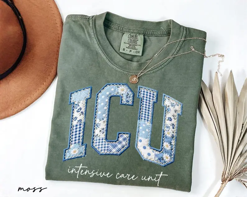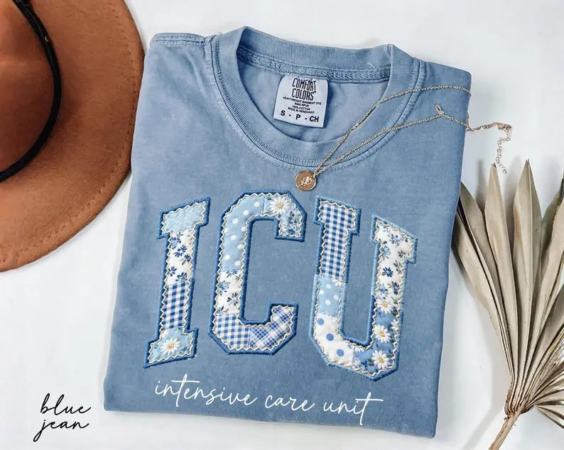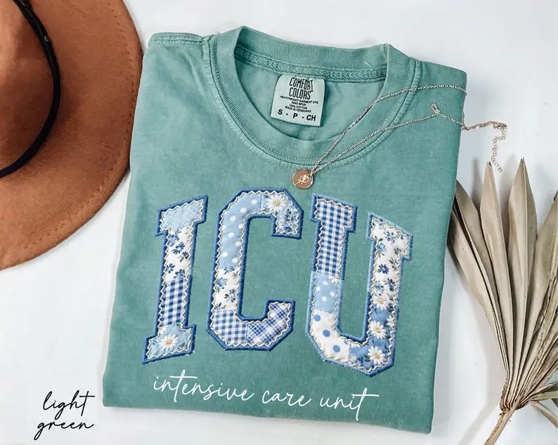 Comfort Colors ICU Nurse Shirt, Faux Patchwork Critical Care Nurse Tee, Intensive Care Unit Shirt, Nurse Appreciation,Nurse Graduation Gift