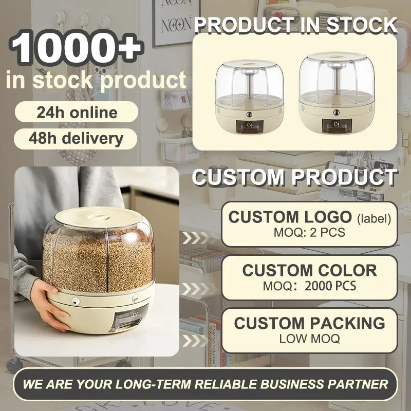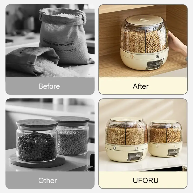UFORU US Stock Modern Plastic Cereals Storage Rotating Dispenser 360° Large Airtight Rice Container Food Storage Box With Lid For Kitchen Pantry Organization