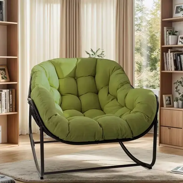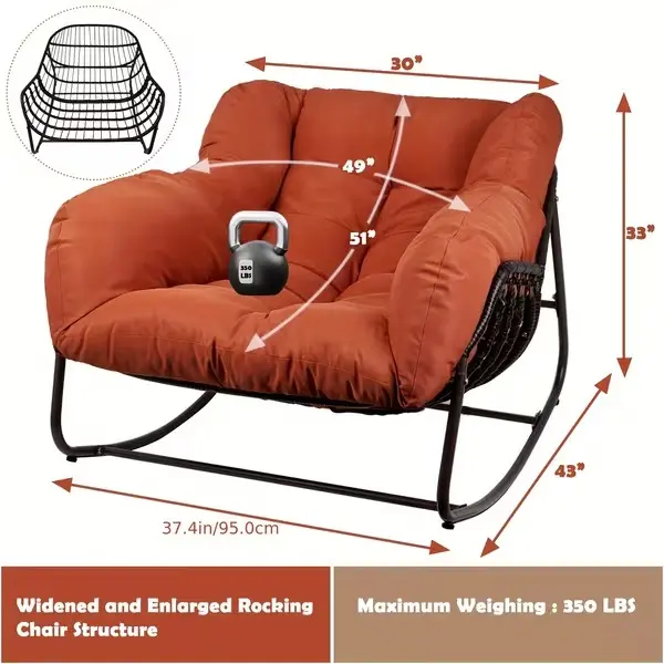 Relax in style with this Outdoor Papasan Rocking Chair, designed for ultimate comfort and a cozy lounging experience. Featuring a spacious egg-shaped design, it provides a deep, supportive seat that gently rocks for added relaxation.