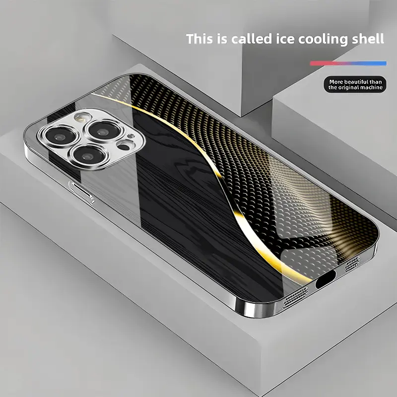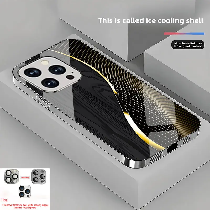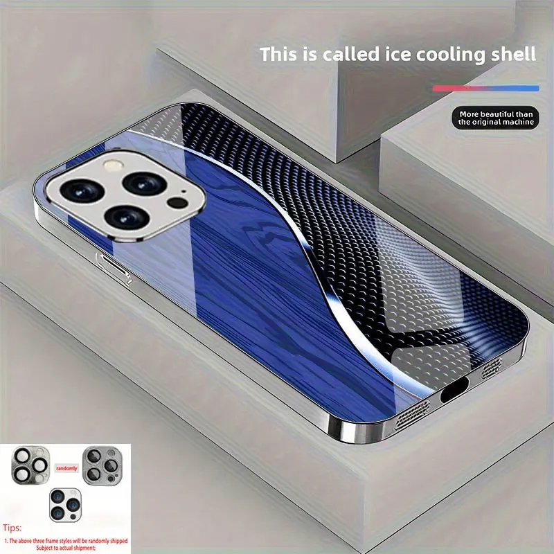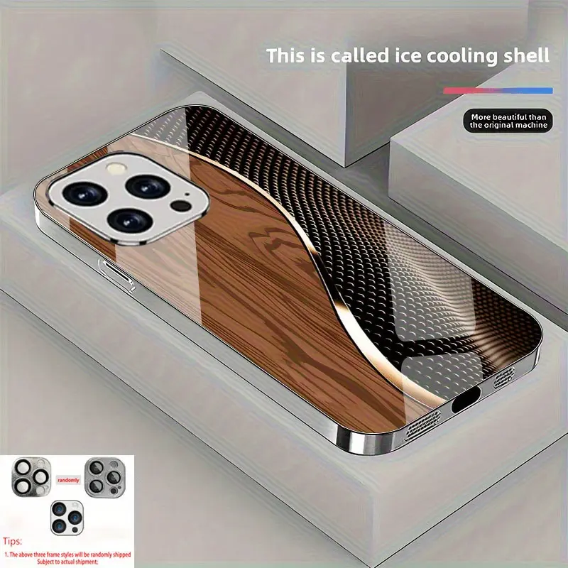 Creative patterned glass phone case, combining wood grain and tech-inspired wave lines, suitable for iPhone 17 16 15 14 13 12 11 pro max