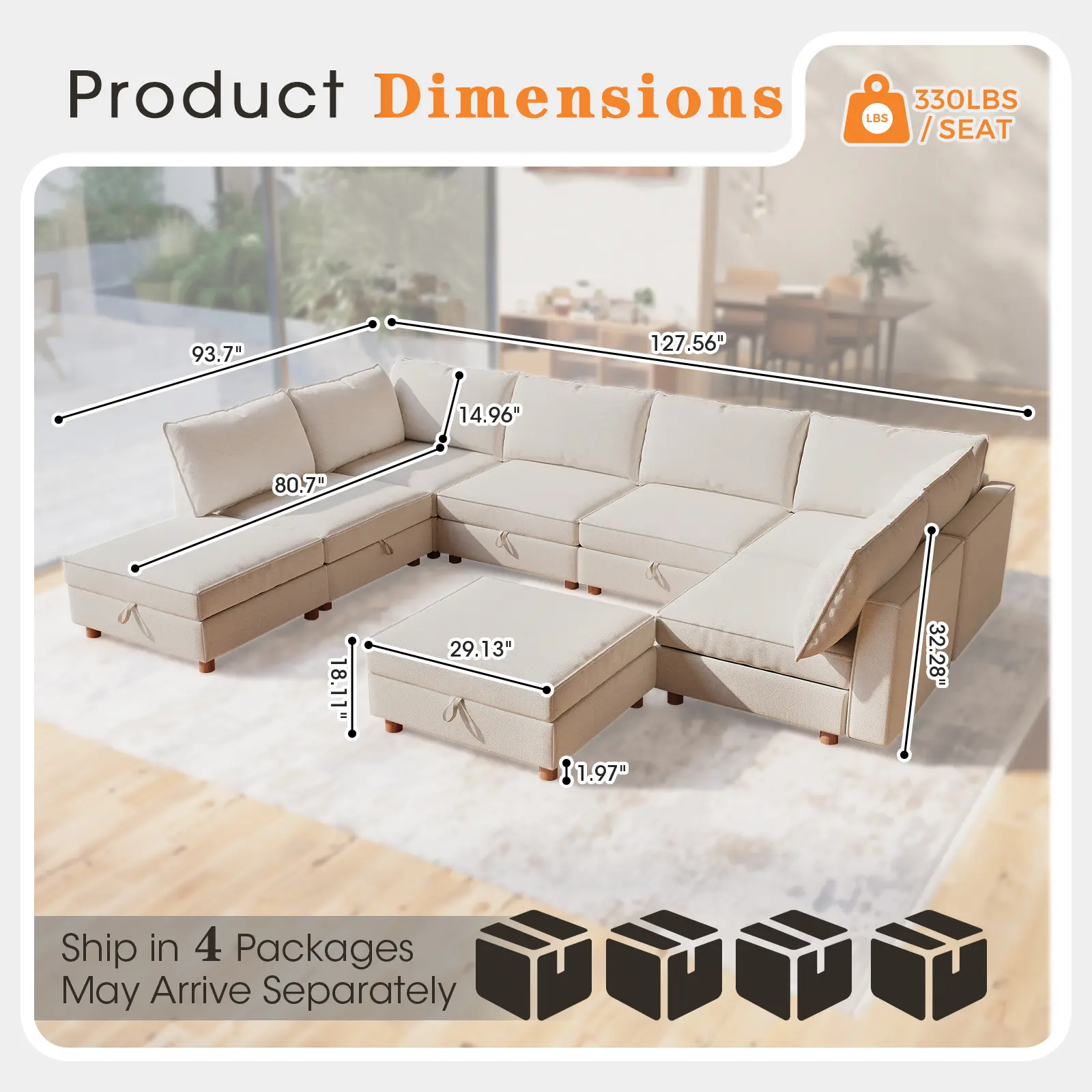 ·【Solid Wood Frame & Sturdy Load-Bearing】Built with a solid wood frame and reinforced joints, this oversized sectional sofa delivers high stability and sturdiness. As one of the large sectional couches for living room, each seat supports up to 330 lbs for heavy daily use. The solid structure avoids creaks and deformation, ensuring long-lasting durability for sectional sofa products.