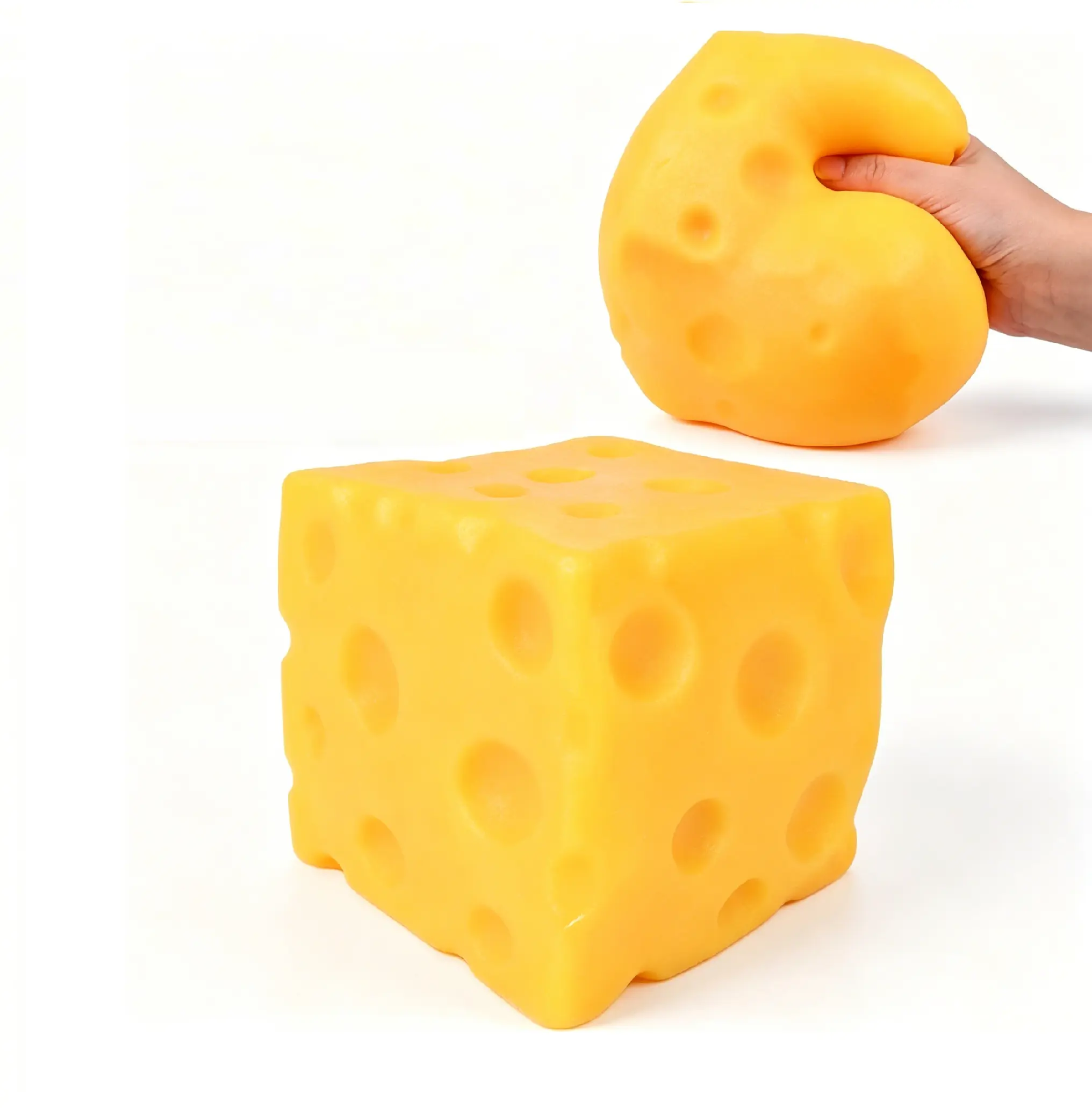 Cute cheese‑block design, over 3 inches — perfect for fun and calming squeezes.