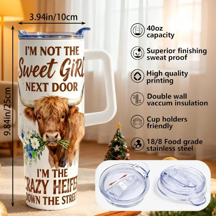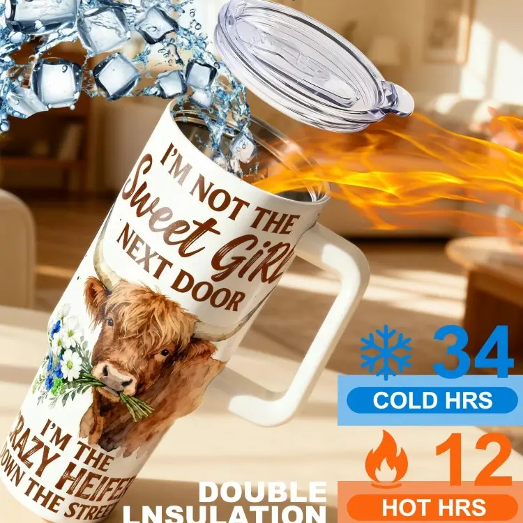 5. [Made in US] 1pc 40oz 20oz Stainless Steel Cup Highland Cow Watercolor Double Wall Vacuum Insulated Cup, Leakproof Lid & Carry Handle Travel Mug Tumbler for Outdoor Camping Hiking, Insulated Travel Drinkware Gift for Dad, Mom, Bro