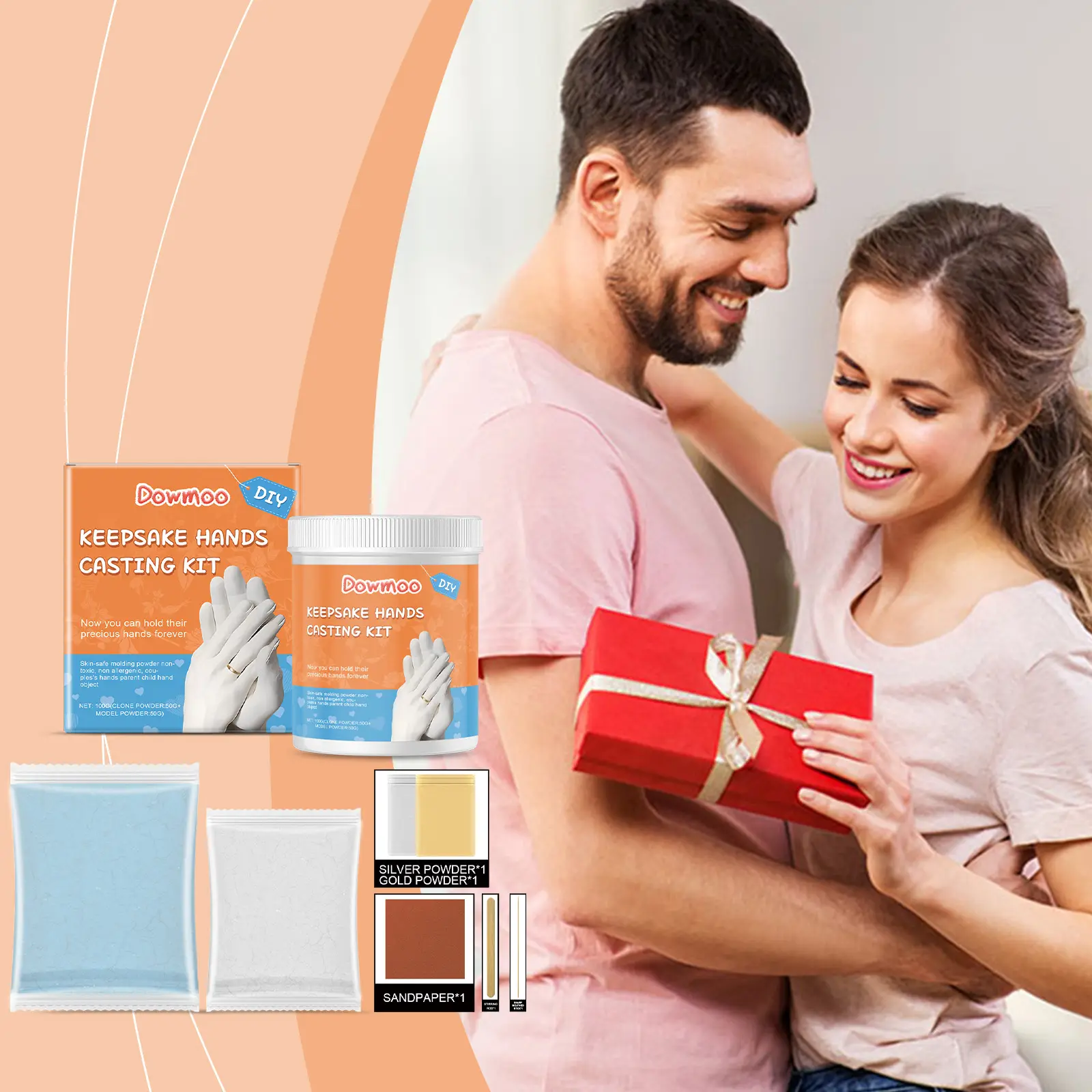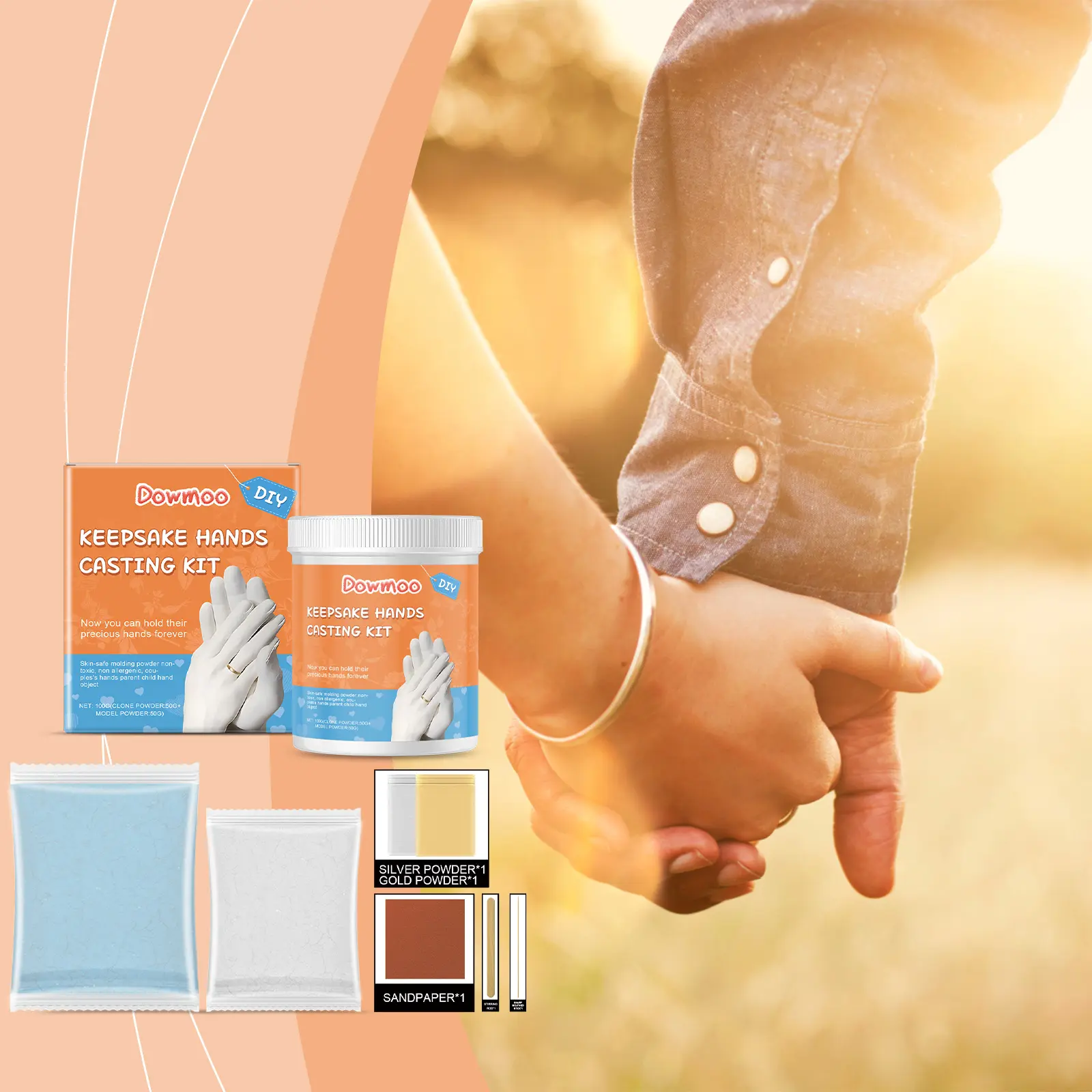 Our 3D plaster model kit is carefully formulated with retarders and fillers. It is designed to create lifelong unforgettable memories for loved ones. The method of use is extremely convenient: add the cloning powder and water into a container, stir evenly with a stirring stick, put your hand into the solution, wait 3-5 minutes for it to change color and solidify, then gently take your hand out. In another container, add the model powder and water and stir evenly with a stirring stick. Pour the mixture into the prepared mold, tap the edges of the container gently to reduce bubbles; after waiting 30 minutes for the model to solidify, use a sharp stick to peel off the cloning layer. After peeling, sand as needed and mix with gold and silver powder. It can also help to enhance emotions, among other things.