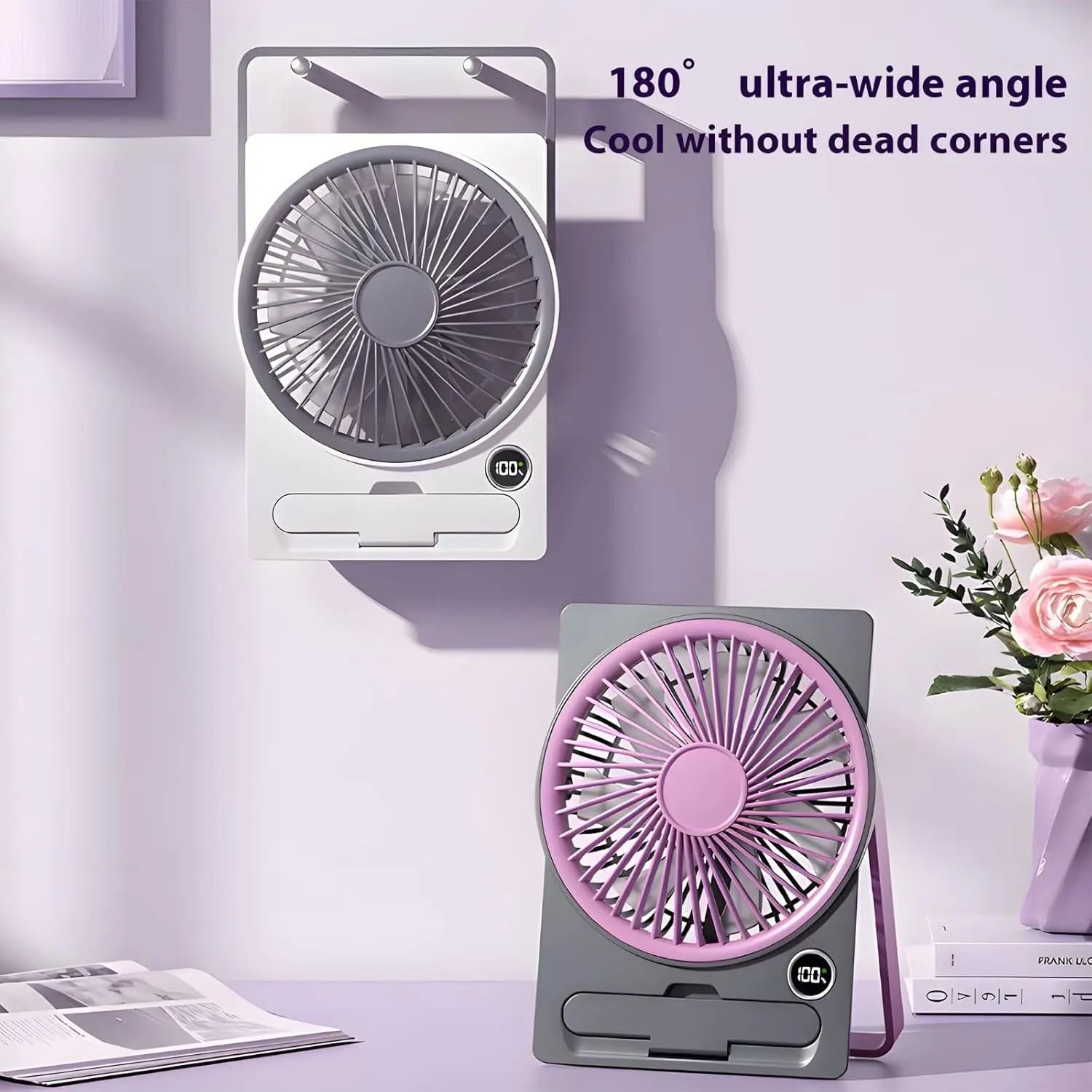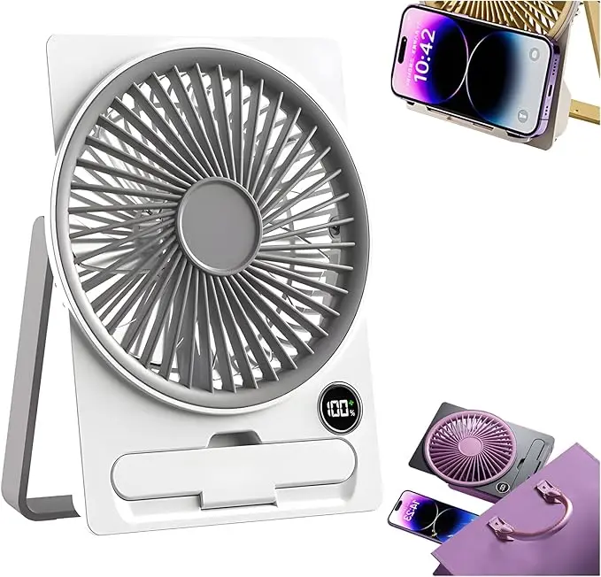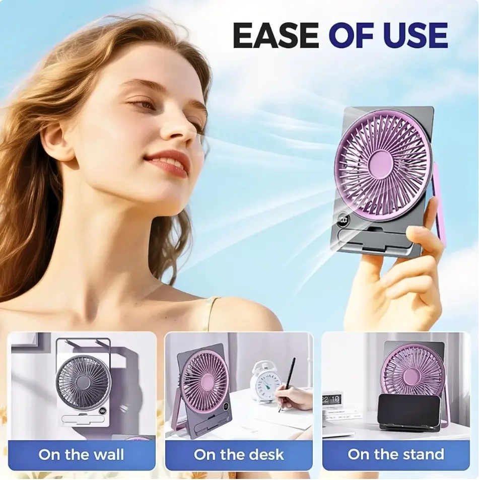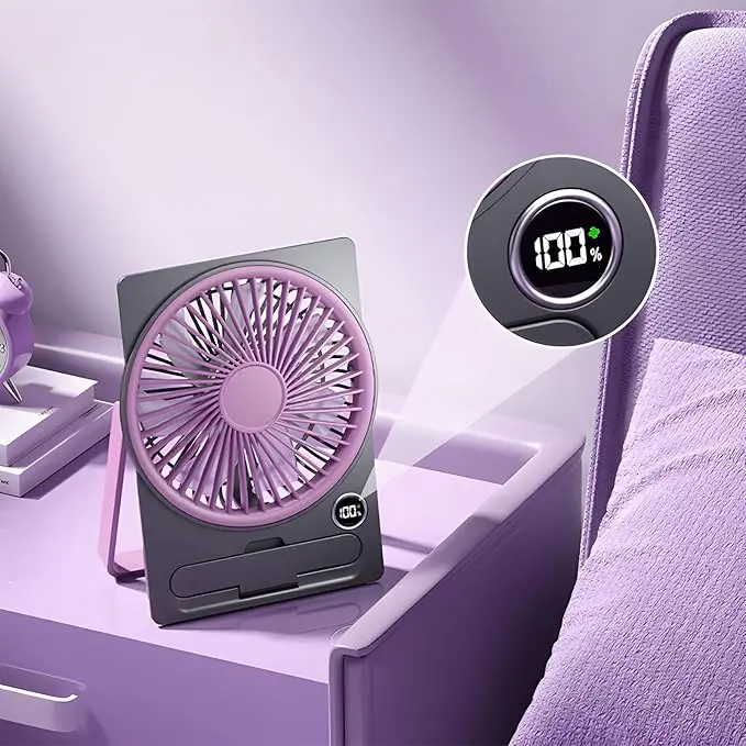 ·【Smart LCD Digital Display】- Stay in control with a built-in LCD screen that clearly shows fan speed and remaining battery life. A must-have feature for rechargeable mini fans, making it easy to manage power on the go.