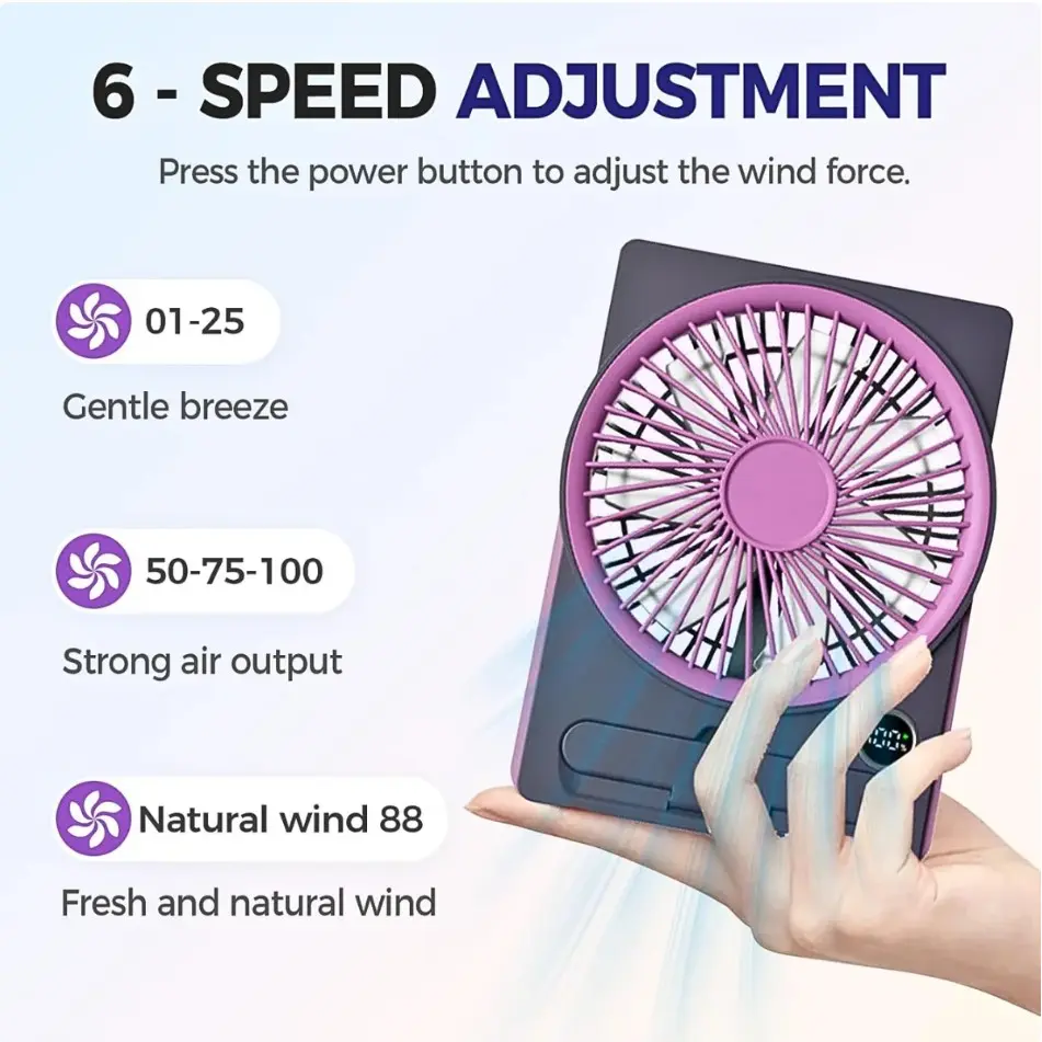 ·【6-Speed Wind Control for Custom Comfort】- Choose from six customizable fan speed levels to suit your cooling needs. Whether you're lounging at home or braving the summer heat outdoors, this USB mini fan gives you the flexibility you need.
