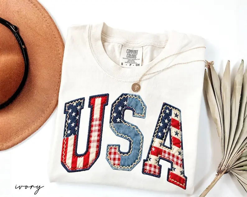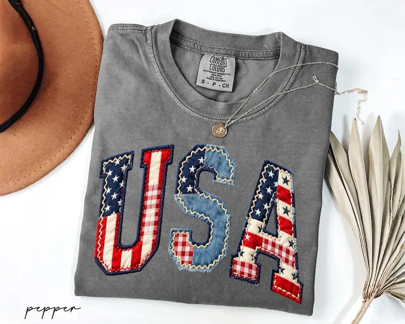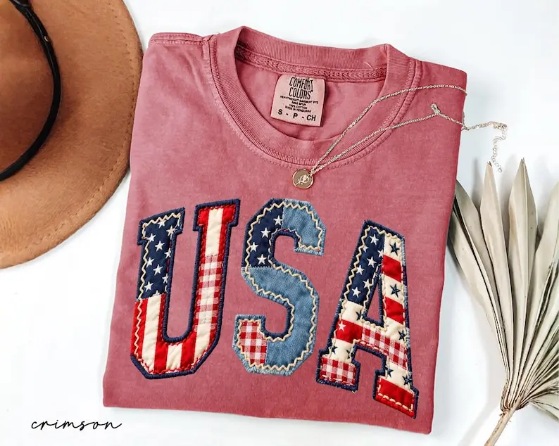 Comfort Colors USA Floral Shirt, Faux Patchwork Patriotic Tee, Vintage USA Flag Shirt, Fourth Of July Mama Shirt, 250 Year Of Freedom Shirt