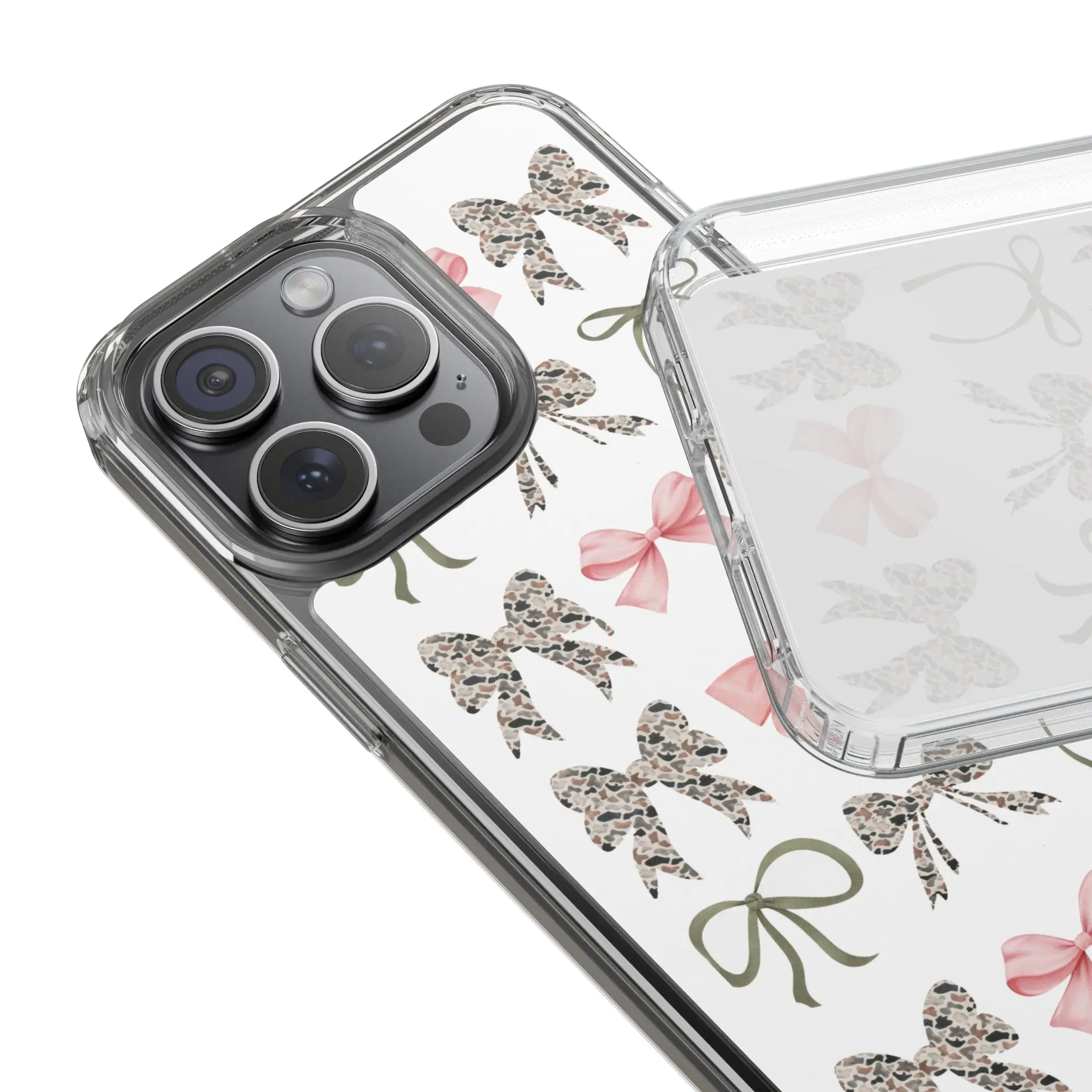 Camo Bow Phone Case, iPhone 17 16 15 14 13 12 11 X 8 7 Pro Max/Pro/Mini, SAMSUNG GALAXY 21 S22 S23 S24 25 ULTRA PLUS Shockproof Anti-Drop Protective Cases