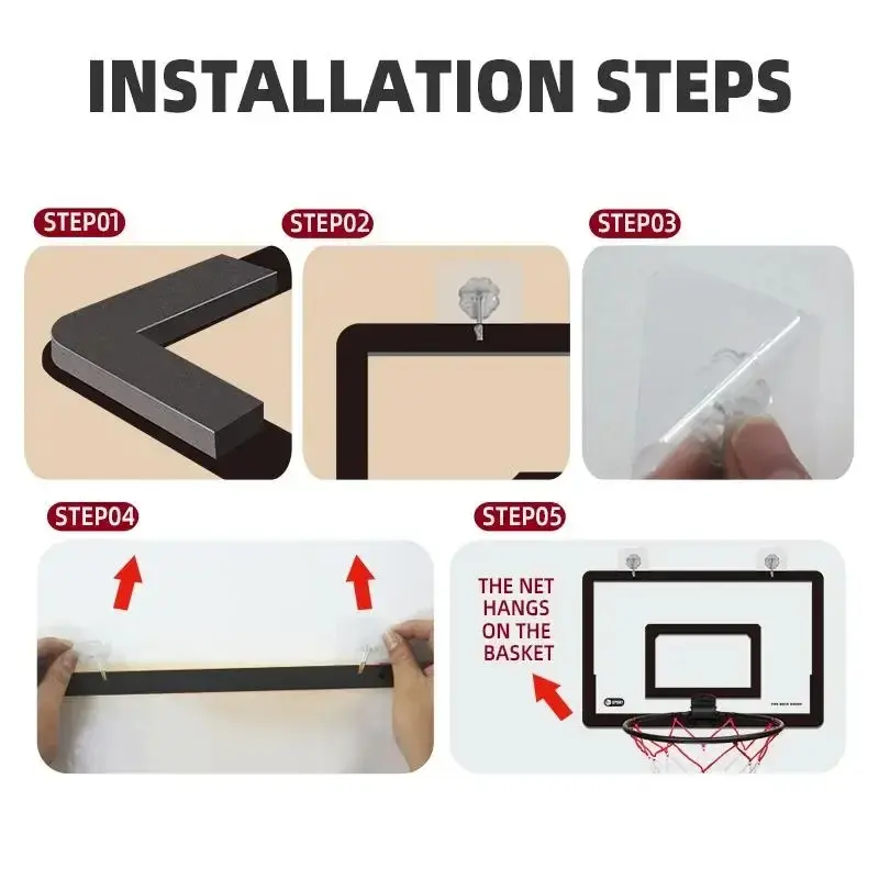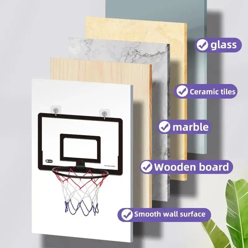·No Drilling Needed: with these hooks, you can enjoy the fun of basketball in more places, such as the bathroom, garage and so on; The sticky hooks make the indoor basket backboard easy to set up and remove; No need to worry about your wall or somewhere else being drilled to break