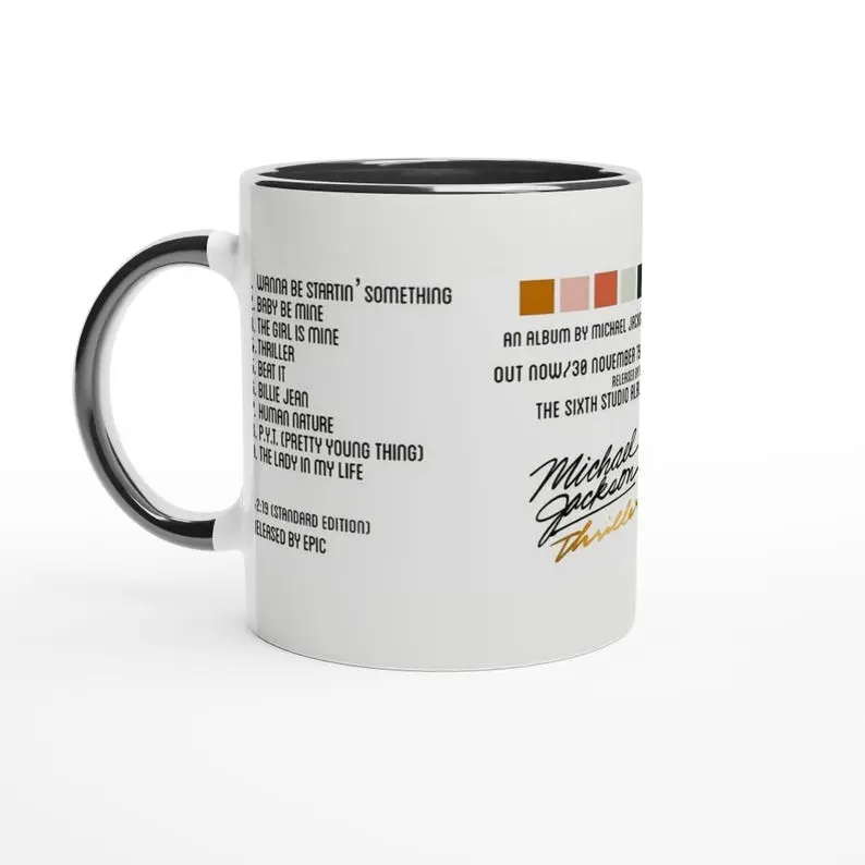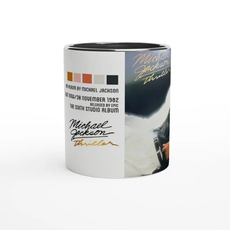 2 sided MJ “Thriller” Album Mug – 11oz Ceramic King of Pop Coffee Cup, 1982 Classic Music Fan Gift, Music Album Cover Coffee Mug, Tea