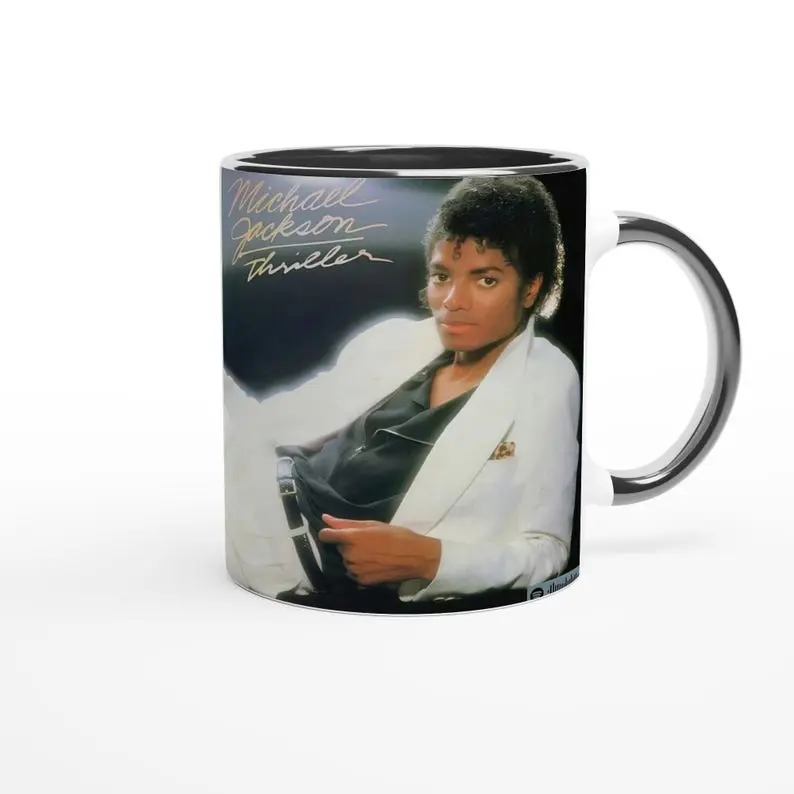 5. 2 sided MJ “Thriller” Album Mug – 11oz Ceramic King of Pop Coffee Cup, 1982 Classic Music Fan Gift, Music Album Cover Coffee Mug, Tea