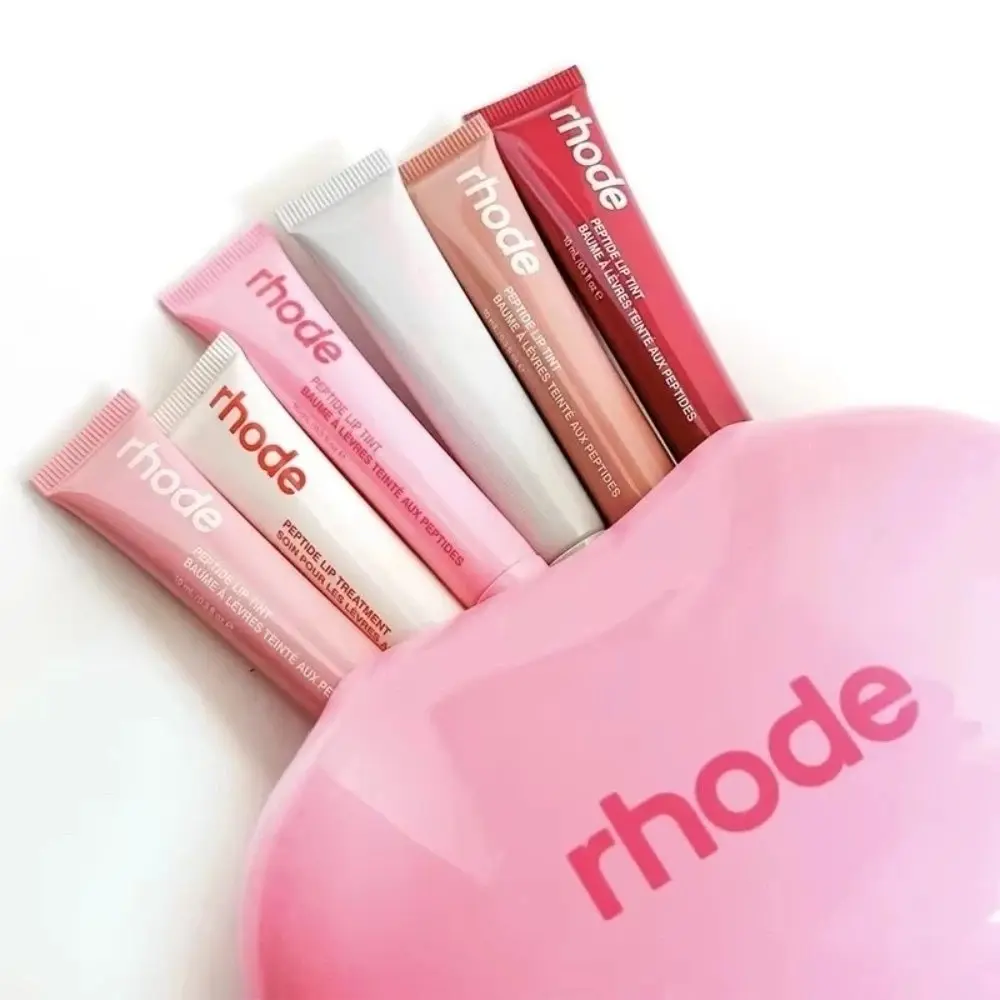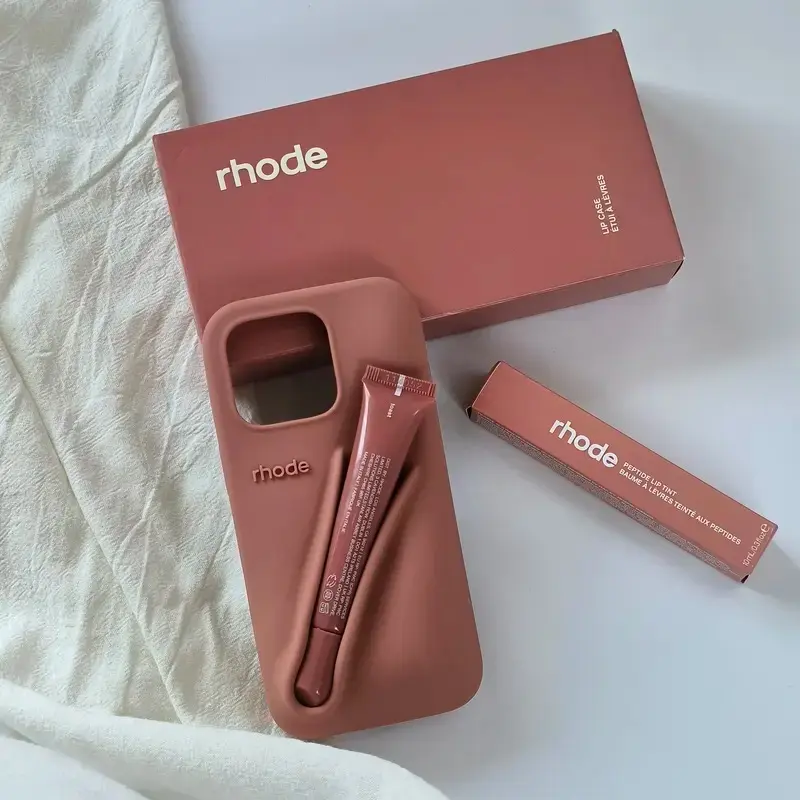 Rhode Lip Gloss Silicone Case with Box designed for iPhone 17, iPhone 16, iPhone 15, iPhone 14, iPhone 13, iPhone 12, and iPhone 11 Pro Max and Plus models. This lipstick style phone case is inspired by the popular Rhode lip gloss aesthetic, combining beauty and protection in one stylish accessory.