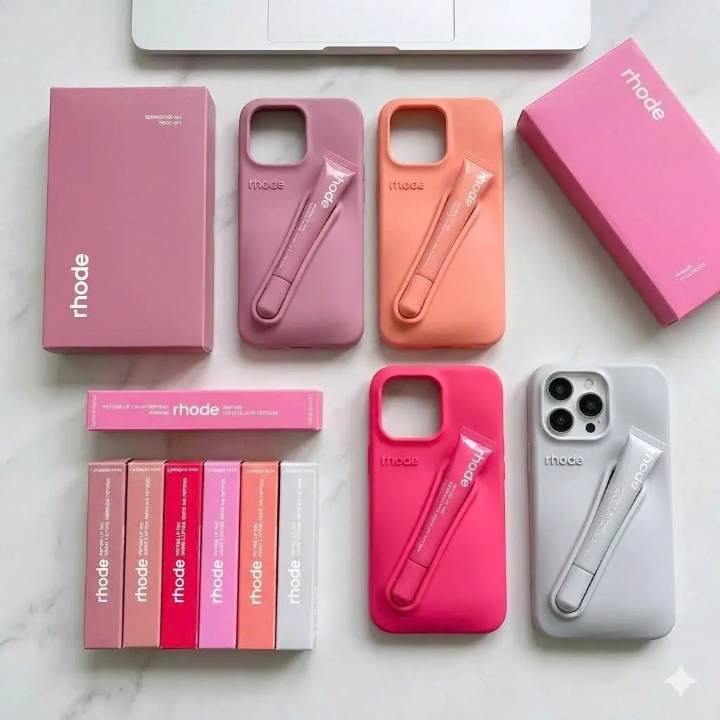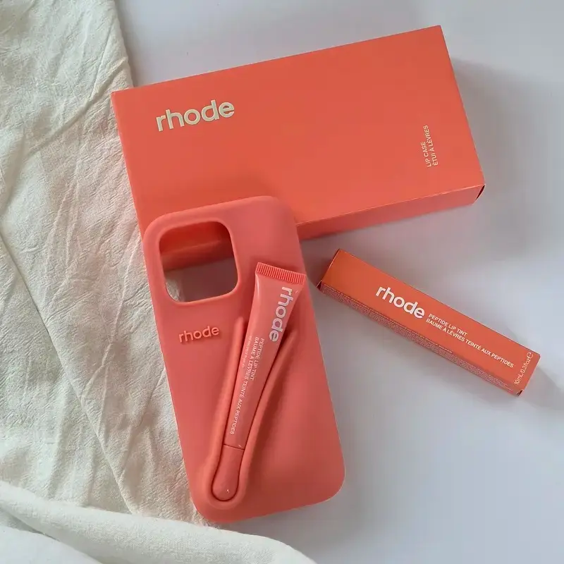 Keywords: rhode lip gloss phone case, lipstick holder iphone case, silicone aesthetic phone case, rhode style iphone case, lip gloss case cover, beauty inspired phone case, cute iphone case for women