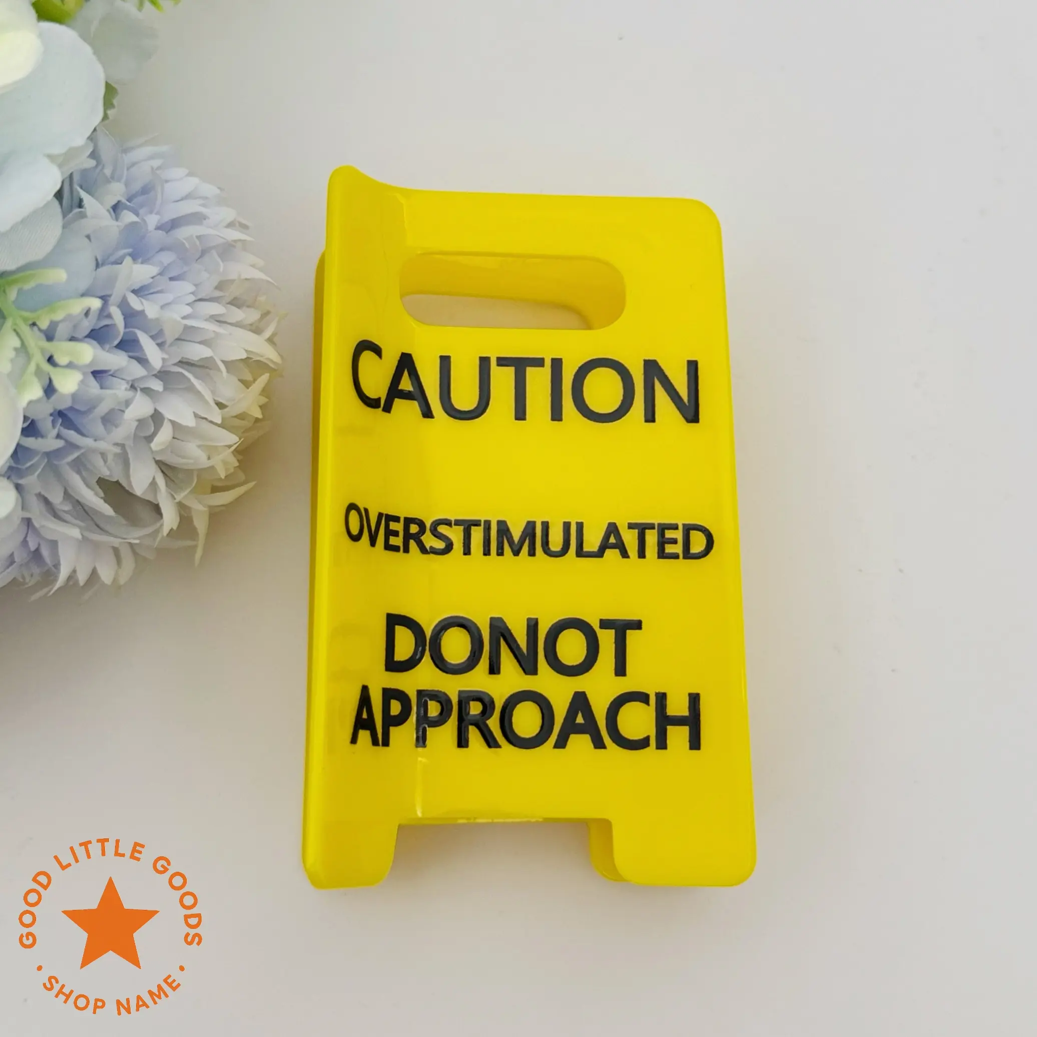 From the Good Little Goods Collection| Designed in California.This bold Caution Sign Hair Claw Clip says it all - "CAUTION: OVERSTIMULATED – DO NOT APPROACH."Inspired by the classic wet floor sign, it’s your new go-to for those days when your vibe is stay back, but make it fashion.
