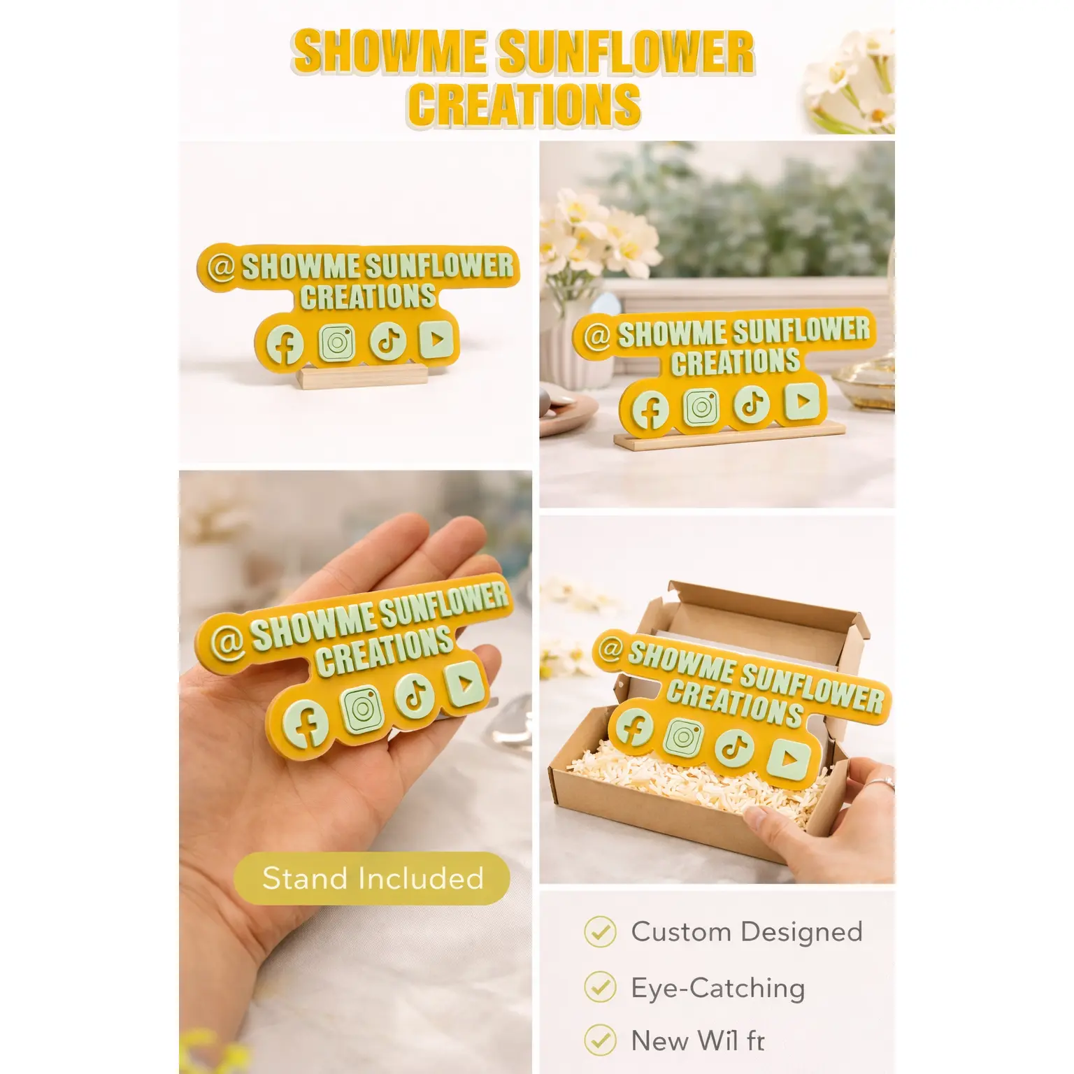 Make your brand impossible to miss with our Custom Acrylic Social Media Sign — the perfect statement piece for your product photos, social media posts and reels, small business setup, or content space. ✨