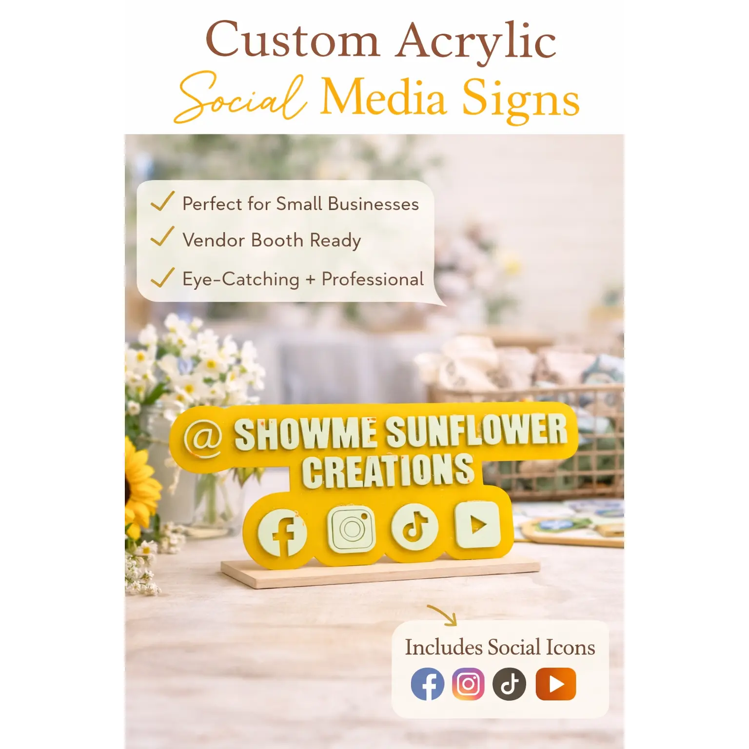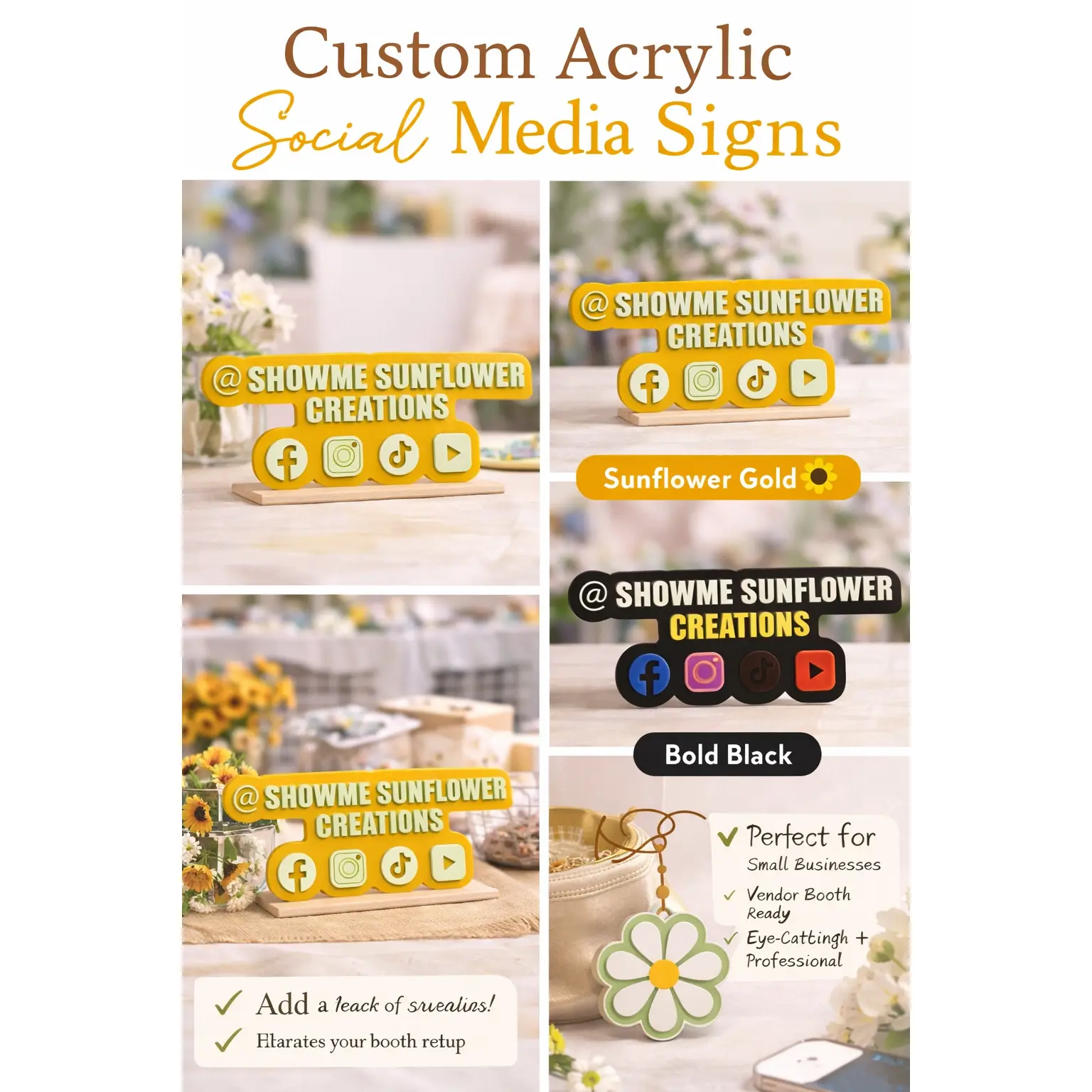 ·Branding photos & reels💛 Why You’ll Love ItThis isn’t just a sign — it’s a branding tool that sells for you✔ Helps customers find your socials instantly✔ Elevates your booth setup✔ Builds a professional, cohesive brand look✔ Creates a memorable customer experience✏️ Personalization InstructionsAt checkout, please include:Your business name or @handleAny specific color requests (if applicable)