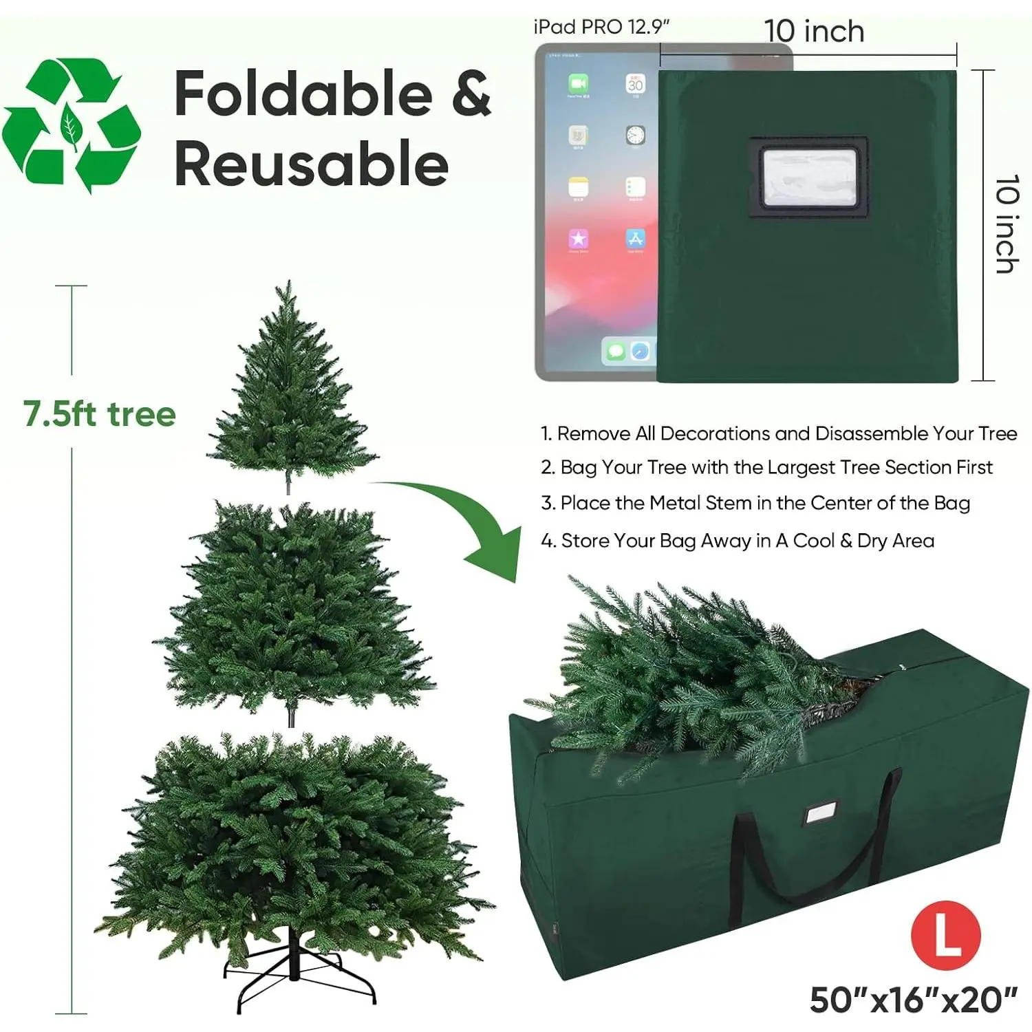 ● [EASY STORAGE] The Christmas tree bag is made of foldable PE materials, just fold and put them away into shelves, or anywhere during the holiday season
