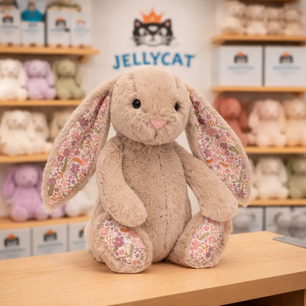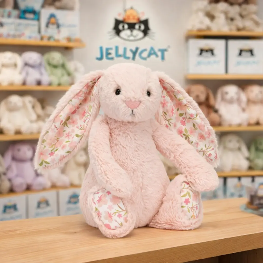 Jellycat Bashful Pink Bunny Plush Toy with Flower Ears is a super soft, floppy bunny. It's a cute Kawaii Teddy Bear, perfect for birthdays, baby showers, and Valentine’s Day. This plush toy brings comfort and charm. It includes a bonus gift and a Jellycat gift bag, enhancing the experience. Ideal for Jellycat enthusiasts.