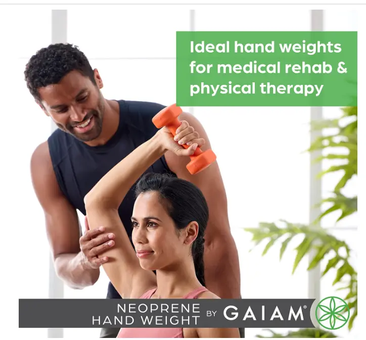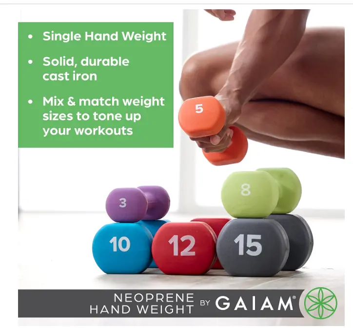 Gaiam Dumbbell Hand Weight is ideal for home gym workouts. Sold in singles, it's perfect for strength training. This neoprene-coated dumbbell is designed for both women and men. Enhance your fitness routine with this versatile free weight.